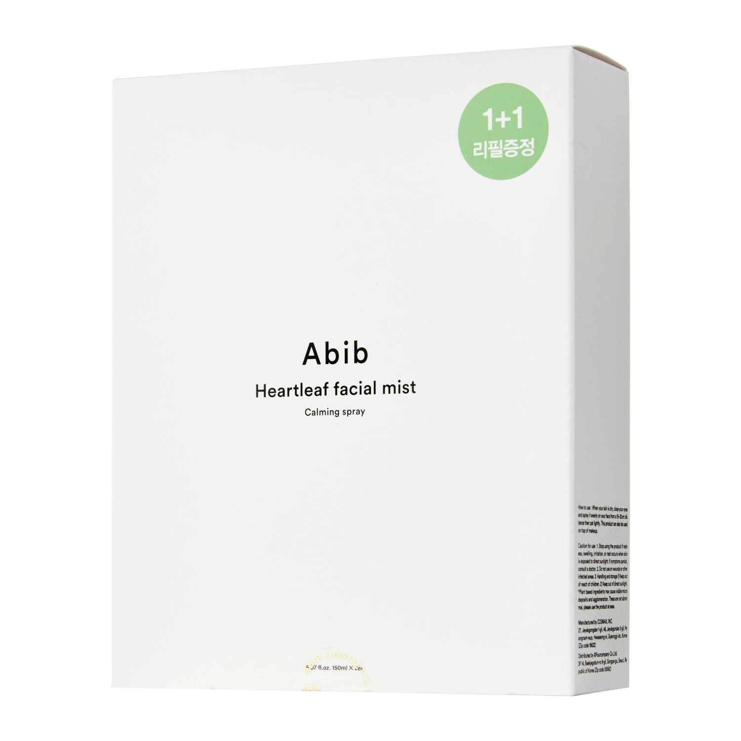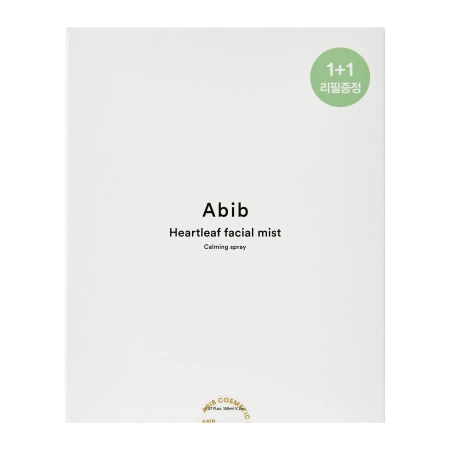 Abib - Heartleaf Facial Mist Calming Spray - drėkinanti ir raminanti veido dulksna. Lengva, gaivinanti formulė. Jo sudėtyje yra ingredientų, kurie ramina ir stiprina odos barjerą. Širdžialapės ekstraktas mažina sudirgimus ir pasižymi antioksidaciniu poveikiu, o cukranendrių ekstraktas pagerina odos minkštumą ir drėkinimą. Pridėtas pantenolis ir betainas skatina regeneraciją ir ramina paraudimus. Keramidas NP stiprina hidrolipidinio barjero funkciją ir apsaugo nuo pernelyg didelio sausumo. Dulksną galima naudoti dienos metu, taip pat ant makiažo. Pakuotėje yra pilno dydžio produktas ir 150 ml papildoma talpa.