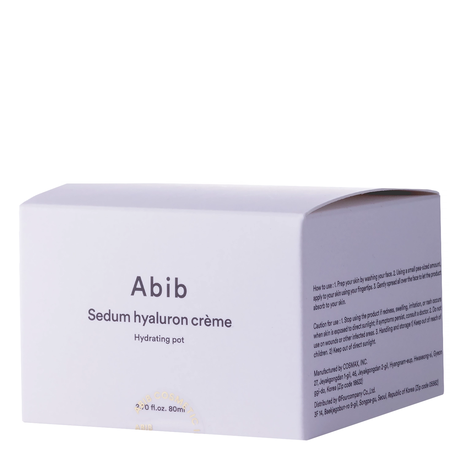 Abib - Sedum Hyaluron Creme - veido kremas su hialurono rūgštimi ir beta gliukanu, kuris veiksmingai drėkina odą ir dar labiau didina jos elastingumą. Ceramide NP ir makadamijų aliejaus derinys padeda atkurti odos apsauginį barjerą bei sustiprina hidrolipidinę epidermio plėvelę. Formulę papildo azijinės centelės ekstraktas, žinomas dėl savo ląstelių regeneraciją skatinančių, atkuriamųjų ir raminamųjų savybių. Kremas pasižymi lengva tekstūra, kuri greitai įsigeria į odą, nepalikdama riebumo ar lipnumo pojūčio. Subtilus kvapas neerzina, o patogus indelis su pridedama mentele užtikrina higienišką ir lengvą naudojimą. Produktas pasižymi didele talpa ir švelniu, pieno atspalvio tonu. Puikiai tinka kaip savarankiškas odos priežiūros žingsnis, papildomas intensyvesnės rutinos elementas arba drėkinamasis kremas prieš naudojant apsauginę priemonę su SPF.