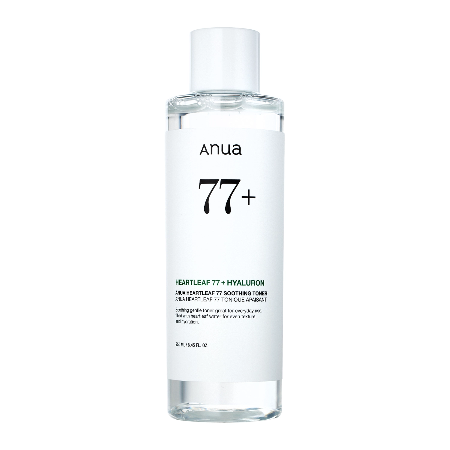 Anua- Heartleaf 77% Soothing Toner - veido tonikas, pasižymintis stipriu raminamuoju poveikiu. Sudėtyje esantis širdies lapų ekstraktas pagerina drėkinimo lygį, ramina sudirgimą ir mažina paraudimą. Teigiama, kad betainas kartu su pantenoliu pagreitina epidermio ir odos lipidų barjero regeneraciją. Sudėtyje taip pat yra dar du ekstraktai: cukranendrių ekstraktas, padedantis šalinti odos spalvos pokyčius ir mažinti smulkias raukšleles, ir portulakos ekstraktas, turintis gydomąjį, raminamąjį ir raminamąjį poveikį.