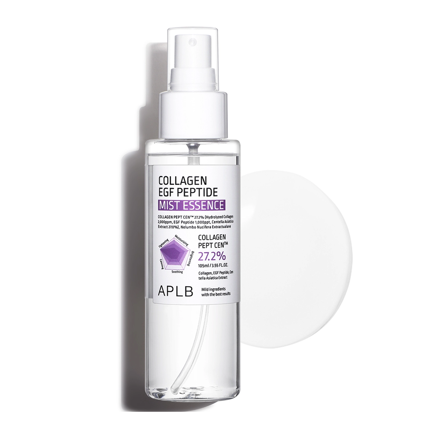 APLB - Collagen EGF Peptide Mist Essence - veido esencija patogioje purkštuvo pakuotėje, kuri purškia švelnią miglą. Sudėtyje yra patentuoto ingrediento Collagen Pept Cen™, azijinės centelės vandens, sh-Oligopeptide-1 ir hidrolizuoto kolageno. Tokia veikliųjų medžiagų sudėtis labai pagerina epidermio barjerą, skatina odos regeneraciją, drėkina ir ramina sudirgusią odą. Pridėtas pantenolis gerina produkto priešuždegimines savybes, o skvalanas gerina kitų ingredientų, taip pat maitinamųjų, įsiskverbimą. Esencijos sudėtyje nėra papildomų kvapiųjų medžiagų, jos pH yra šiek tiek rūgštus - nuo 5,0 iki 6,5.