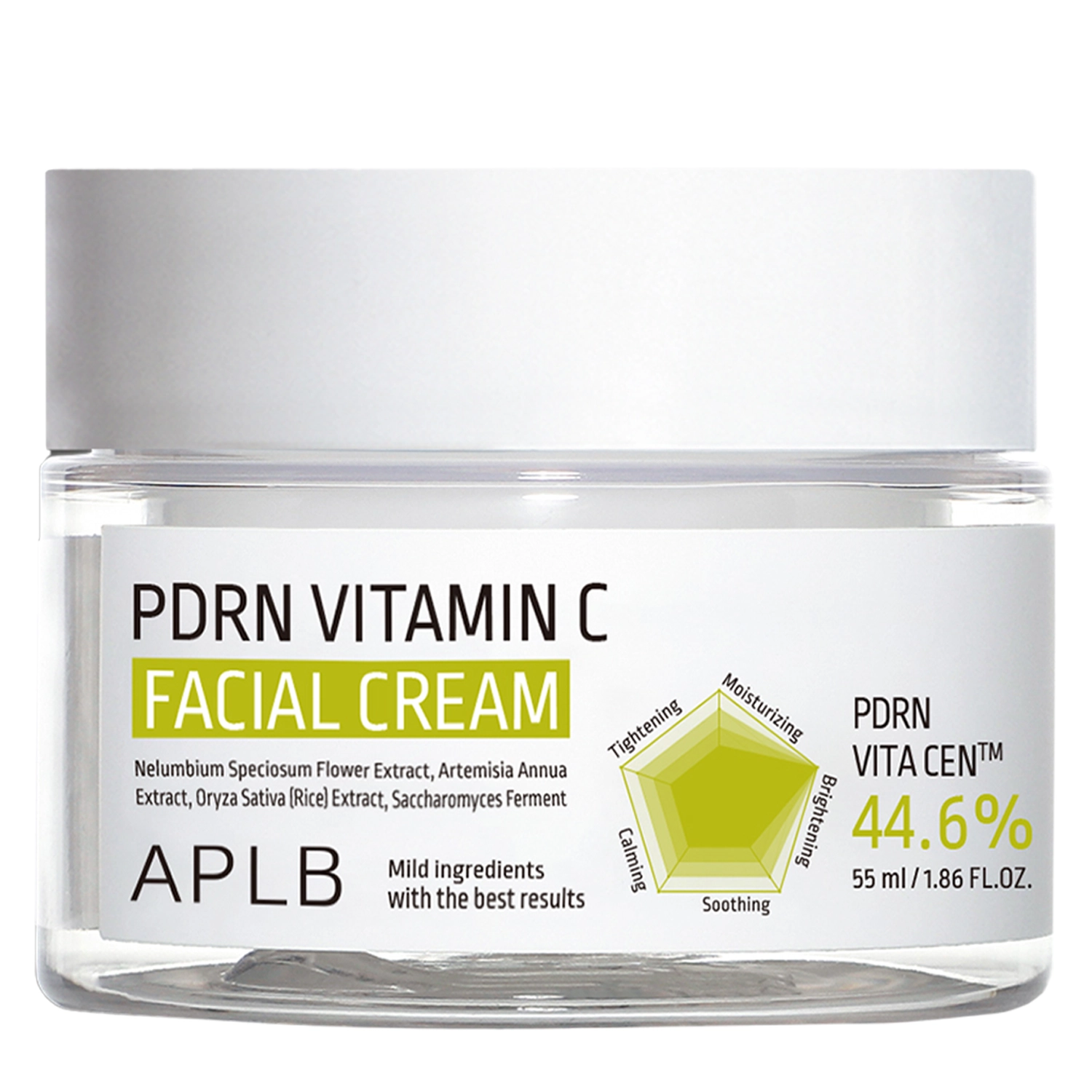 APLB - PDRN Vitamin C Facial Cream - stangrinamasis ir antioksidacinis veido kremas su vitaminu C. Jo formulės pagrindą sudaro APLB PDRN VITA CEN™ kompleksas, kurio koncentracija yra 44,6 %. Kompleksą sudaro raminamasis sudirgimus ir drėkinamasis azijinės centelės ekstraktas, antioksidantas ir odos tonusą lyginantis vitaminas C askorbo rūgšties pavidalu ir PDRN - regeneruojanti ir raukšles mažinanti sudedamoji dalis. Jis gaunamas iš lašišų pieno ir pasižymi galingomis regeneruojančiomis, stimuliuojančiomis ląstelių atsinaujinimą, stangrinančiomis ir priešuždegiminiu poveikiu. Kremo formulė yra lengva ir bekvapė, todėl jis tinka visų tipų odai, įskaitant jautrią odą.