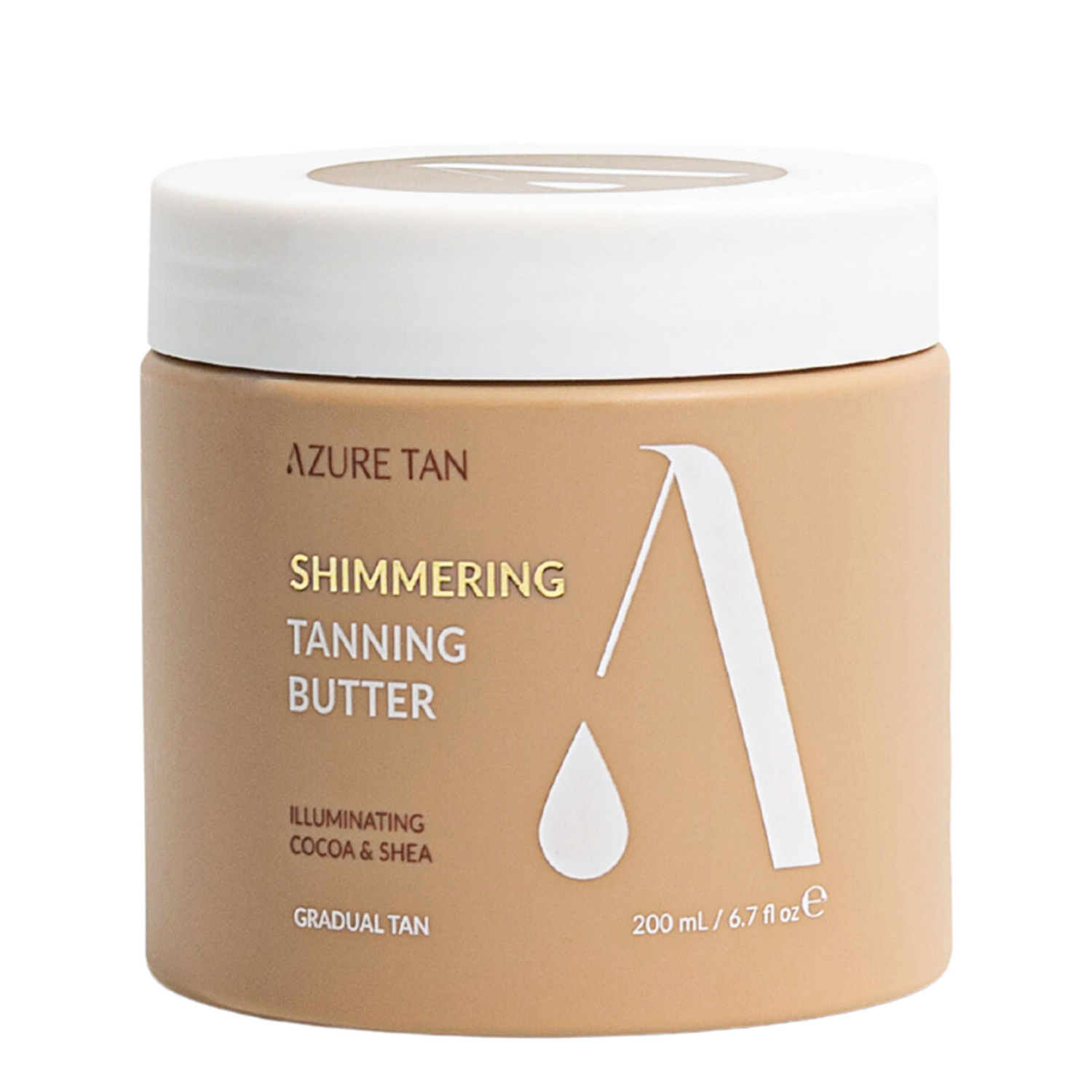Azure Tan- Shimmering Tanning Butter - laipsniškai įdegantis kūno sviestas, kuris maitina odą ir suteikia jai švytėjimo. Dėl sudėtyje esančių žvilgančių dalelių jis suteikia švytėjimo efektą. Jis suteikia odai gražų bronzinį atspalvį ir suteikia aksominio švelnumo pojūtį. Sudėtyje yra natūralaus DHA, kuris lemia savaiminio įdegio savybes. Naudojamas taukmedžio sviestas intensyviai švelnina ir drėkina, o kakavos sviestas gerina epidermio elastingumą. Produktas pasižymi švelniu kokosų ir kakavos aromatu. Priemonę galima naudoti vieną arba savaiminio įdegio efektui palaikyti. Jo formulė yra veganiška.