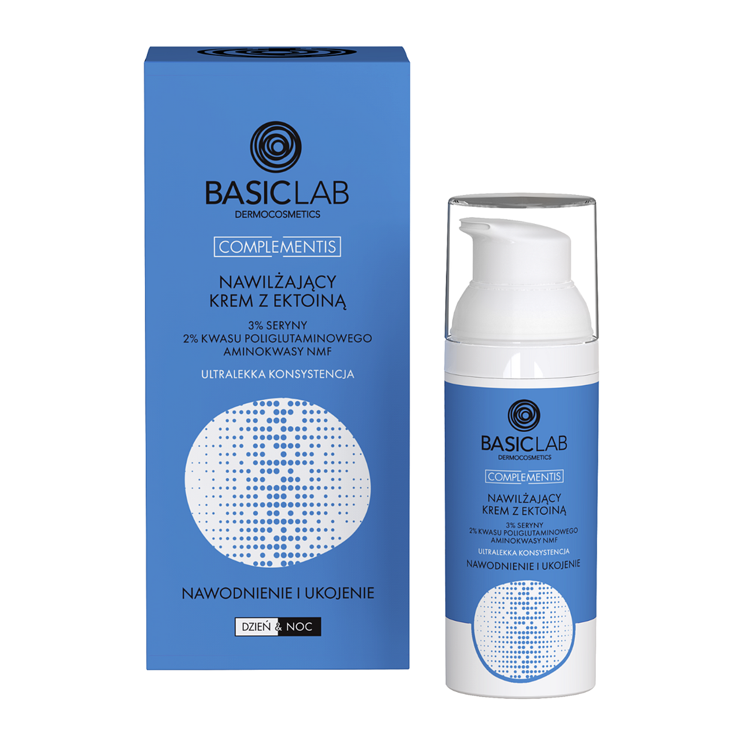 - Itin lengvas veido kremas su ektoinu, serinu ir poliglutamo rūgštimi