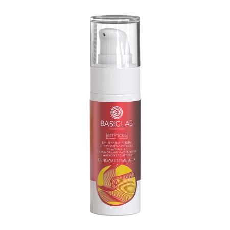 BasicLab - Cosmetology Esteticus - Atnaujinimas ir stimuliavimas - Emulsinis serumas su 1 % gryno retinolio, 5 % vitamino C, kofermentu Q10 ir 2 % kamieninių ląstelių