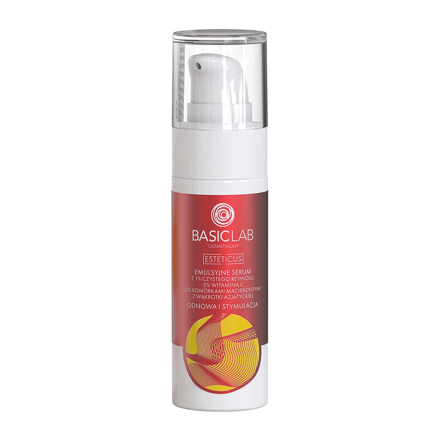 BasicLab - Cosmetology Esteticus - Atnaujinimas ir stimuliavimas - Emulsinis serumas su 1% gryno retinolio, 5% vitamino C, kofermentu Q10 ir 2% kamieninių ląstelių