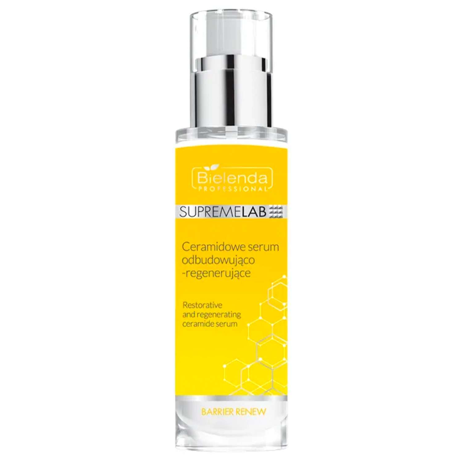 Bielenda Professional - Supremelab Barrier Renew - Keramidų Atstatomasis ir Regeneruojantis Serumas - veido odos priežiūros serumas, stiprinantis natūralų hidrolipidinį barjerą. Jis gali labai padėti, kai oda patyrė nepalankių sąlygų, kurios pakenkė ar pažeidė barjerą, pavyzdžiui, aknės gydymas ar alerginė reakcija. Barjero stiprinimas taip pat tapatinamas su odos drėgmės lygio didinimu, o tai padaryti leidžia formulėje esantys tokie ingredientai kaip skvalenas, cholesterolis, trijų rūšių keramidai ir simondsijų aliejus. Be to, sudėtyje esanti trehalozė tiesiogiai drėkina surišdama vandenį epidermio paviršiuje ir pantenolis pagreitina natūralius regeneracijos procesus.