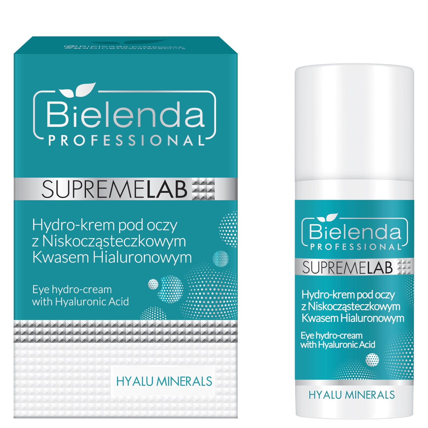 Bielenda Professional - Supremelab Hyalu Minerals Hydro - gelio ir kremo tekstūros paakių kremas, kuris yra lengvas ir neapsunkina jautrios srities. Sudėtyje yra hialurono rūgšties, kuri epidermyje suriša vandenį, todėl palaiko drėkinimo lygį ir išlygina. Skvalanas kartu su trehaloze palaiko drėkinamąjį kremo poveikį. Kita vertus, kofeinas stimuliuoja mikrocirkuliaciją, todėl mažina paburkimą ir šviesina tamsius ratilus po akimis. Pridėtas azijinės centelės ekstraktas pasižymi raminamosiomis savybėmis ir skatina regeneracijos procesus.