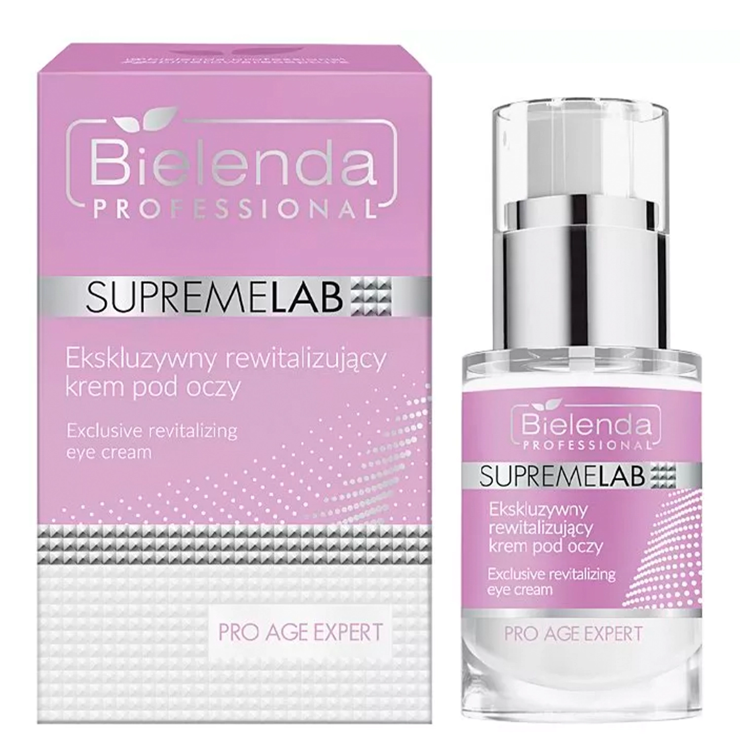 Bielenda Professional - Supremelab - Pro Age Expert - Exclusive Revitalizing Eye Cream - Išskirtinis Atgaivinantis Paakių Kremas - kremas nuo raukšlių ir įtempimo. Sudėtyje esančios veikliosios medžiagos, tokios kaip kofeinas ir ženšenio ekstraktas, lygina ir stangrina odą bei mažina paburkimą aplink akis. Sudėtyje esantis apelsinų žiedų hidrolatas apsaugo nuo žalingo išorinių veiksnių poveikio, o skydamario ekstraktas ramina, mažina patinimą ir paburkimą aplink akis. Kremas puikiai tiks esant tamsiems ratilams ir paburkimui aplink akis.