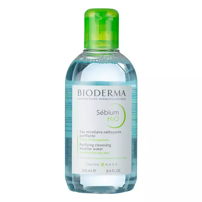 Bioderma - Sebium H2O - Antibakterinis Micelinis Losjonas į Aknę Linkusiai Odai - veido makiažo valiklis. Sudėtyje yra švelniųjų valomųjų medžiagų, kurios sudaro miceles ir padeda pašalinti lipidines makiažo daleles nuo odos paviršiaus. Papildoma sudedamoji dalis yra vario sulfatas, kuris pasižymi antibakterinėmis savybėmis ir remia spuogų priežiūrą. Ginkmedžio dviskiaučių ekstraktas pasižymi antioksidaciniu poveikiu, kuris taip pat teigiamai veikia odą.