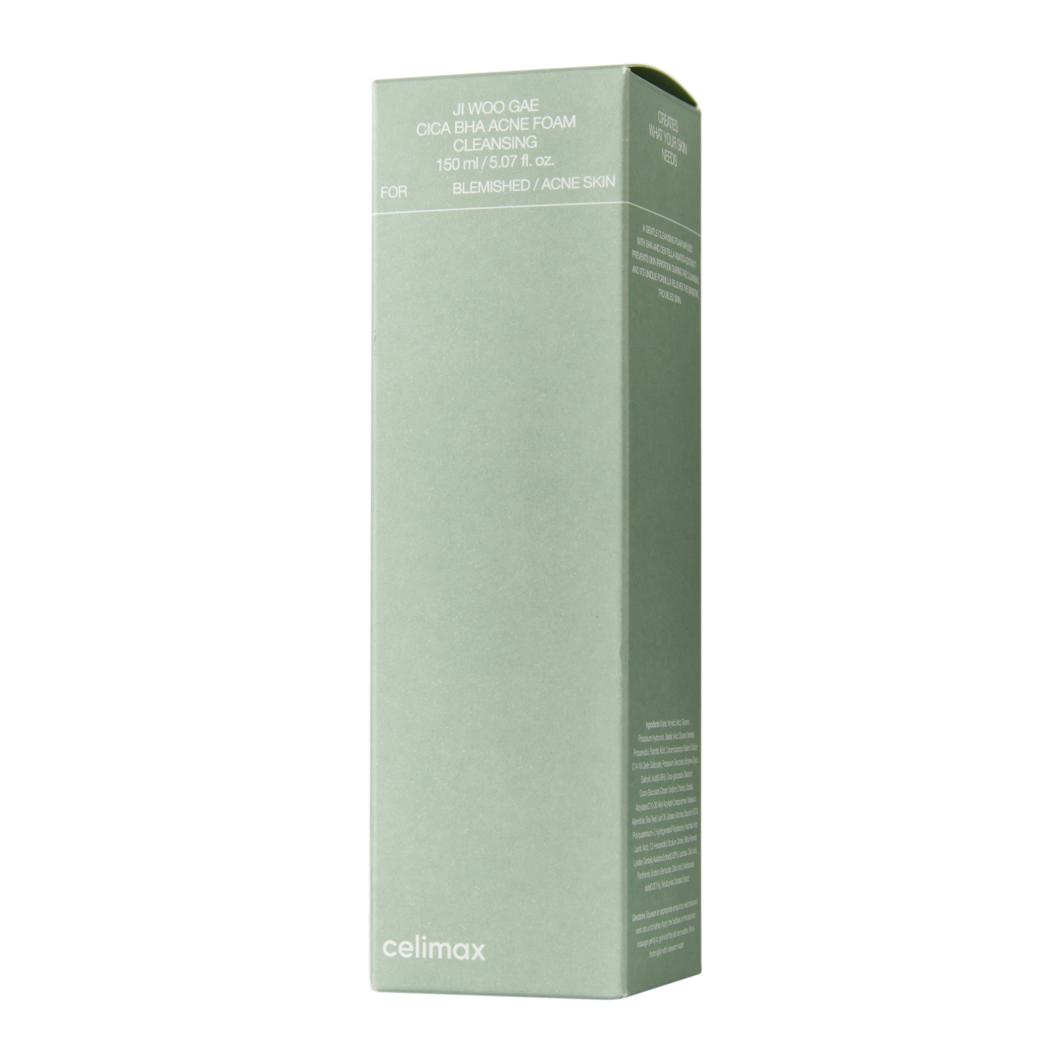 Celimax - Ji.Woo.Gae Cica BHA Acne Foam Cleansing - problemiškai ir jautriai odai skirtos veido putos. Ji kruopščiai pašalina nešvarumus ir riebalų perteklių, o dėl savo purios tekstūros yra švelni ir nedirgina. Sudėtyje yra salicilo rūgšties, kuri pasižymi antibakteriniu ir odą šveičiančiu poveikiu, mažina spuogų atsiradimą. Veikimą nuo spuogų sustiprina arbatmedžio aliejus, o azijinės centelės ekstraktas ir " Bifida" bakterijų lizatas padeda greičiau atsinaujinti ir mažina uždegimą.