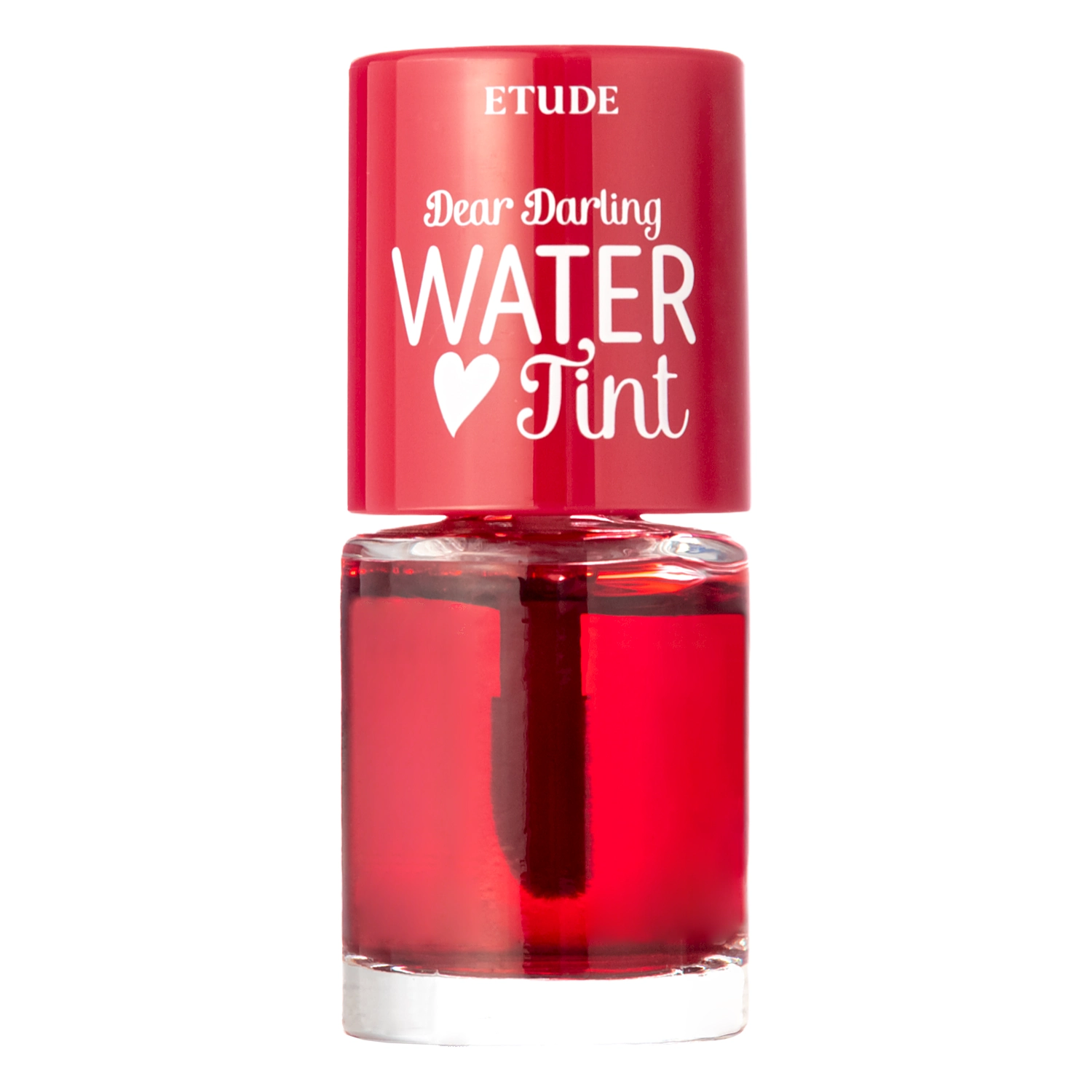 Etude House - Dear Darling Water Tint - Cherry Ade – lūpų tintas su vandeninga formule ir pusiau matiniu efektu, kuris labai greitai įsigeria į lūpas. Produktas nesukelia lipnumo pojūčio, yra ilgalaikis, o dėl papildytos trehalozės intensyviai drėkina ir puoselėja lūpas.