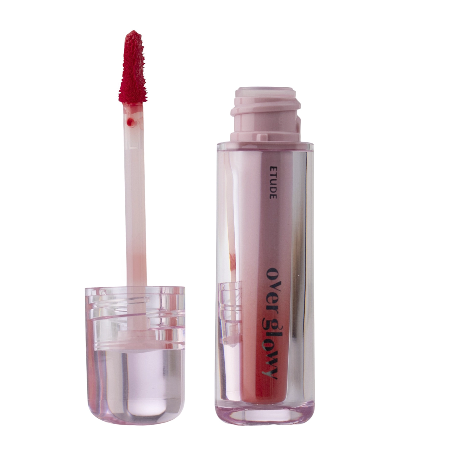 Etude House - Over Glowy Tint - 03 Ddori Apple Red - veganinis lūpų tintas, kuris suteikia blizgią plėvelę. Suteikia lūpoms šviesiai, sultingai raudoną atspalvį. Turi lengvą formulę, kuri nesukelia lipnumo pojūčio. Dėl papildomo skvalano produktas drėkina ir prižiūri lūpas.