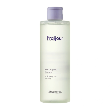 Fraijour - Retin-Collagen 3D Core Toner - senėjimą stabdantis tonikas veidui. Sudėtyje esantis kolagenas drėkina, minkština ir lygina odą. Arbatmedžio ekstraktas minkština, švelnina epidermį ir gaivina, o adenozinas pasižymi priešuždegiminiu, regeneruojamuoju poveikiu ir išlygina odos tonusą, be to, turi priešraukšlinį poveikį. Pantenolis drėkina epidermį, ramina sudirgimus ir saugo lipidinį barjerą. Savo ruožtu natrio hialuronatas drėkina, suteikia elastingumo ir lygina odą.