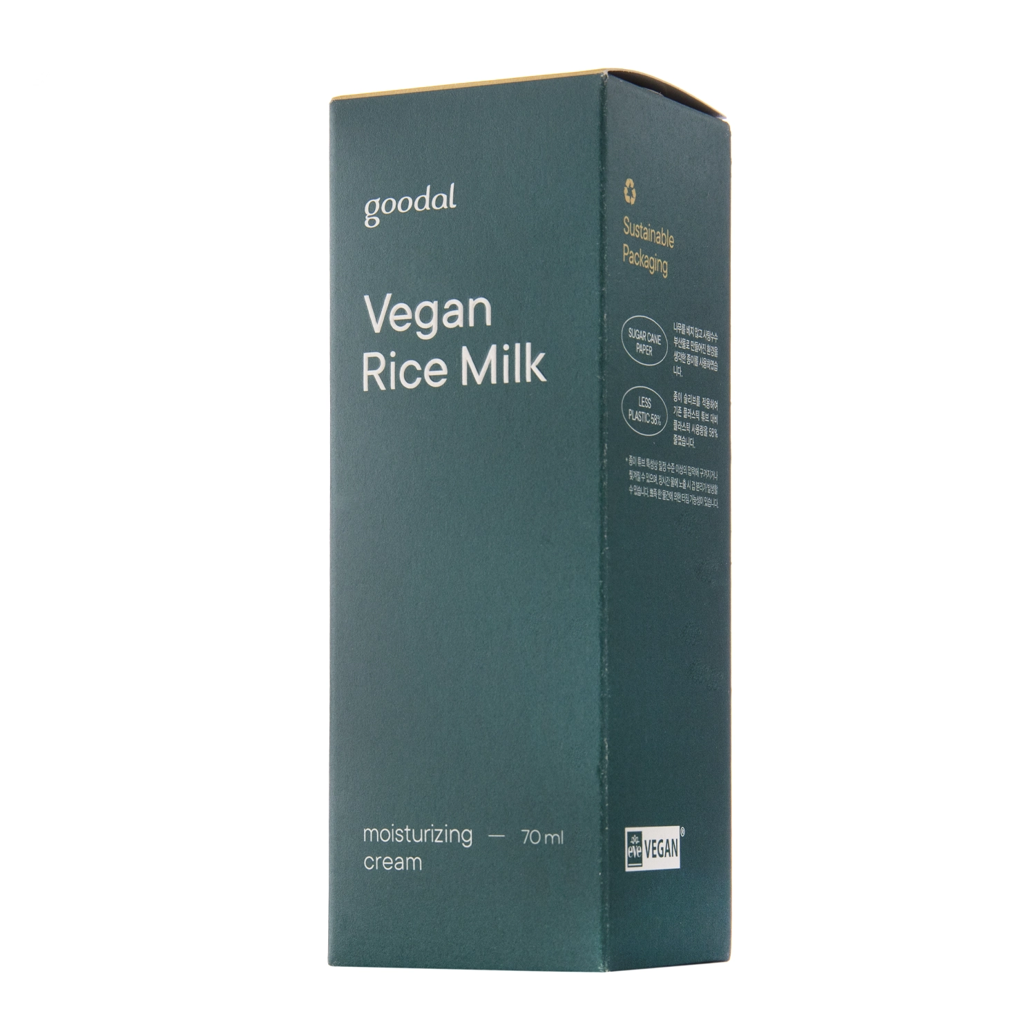 Goodal - Vegan Rice Milk Moisturizing Cream - veido kremas, tinkamas sausai odai. Jo sudėtyje yra drėkinimo lygį gerinančių ingredientų, įskaitant sojų pieną, ryžių ekstraktą ir trehalozę. keramidai Savo ruožtu rūpinasi odos barjero stiprinimu ir regeneracija. Kremo formulė yra veganiška.