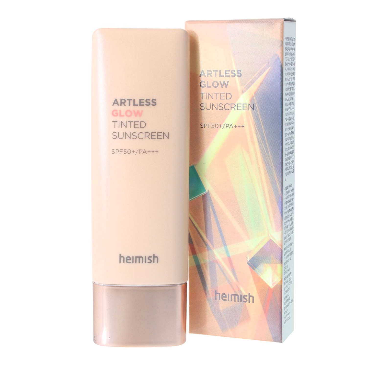Heimish - Artless Glow Tinted Sunscreen Shine Beige SPF50+ PA+++ – smėlio atspalvio veido kremas, apsaugantis odą nuo UVA ir UVB spindulių. Jis yra lengvos, neriebios konsistencijos, kuri greitai įsigeria. Sudėtyje yra mišrių filtrų, kurie padeda apsaugoti nuo saulės spindulių, taip atitolindami senėjimo procesus. Sudėtyje taip pat yra raukšles mažinančio adenozino ir maitinamojo perlų ekstrakto. Viską papildo žėrutis, kuris suteikia odai spindesio.