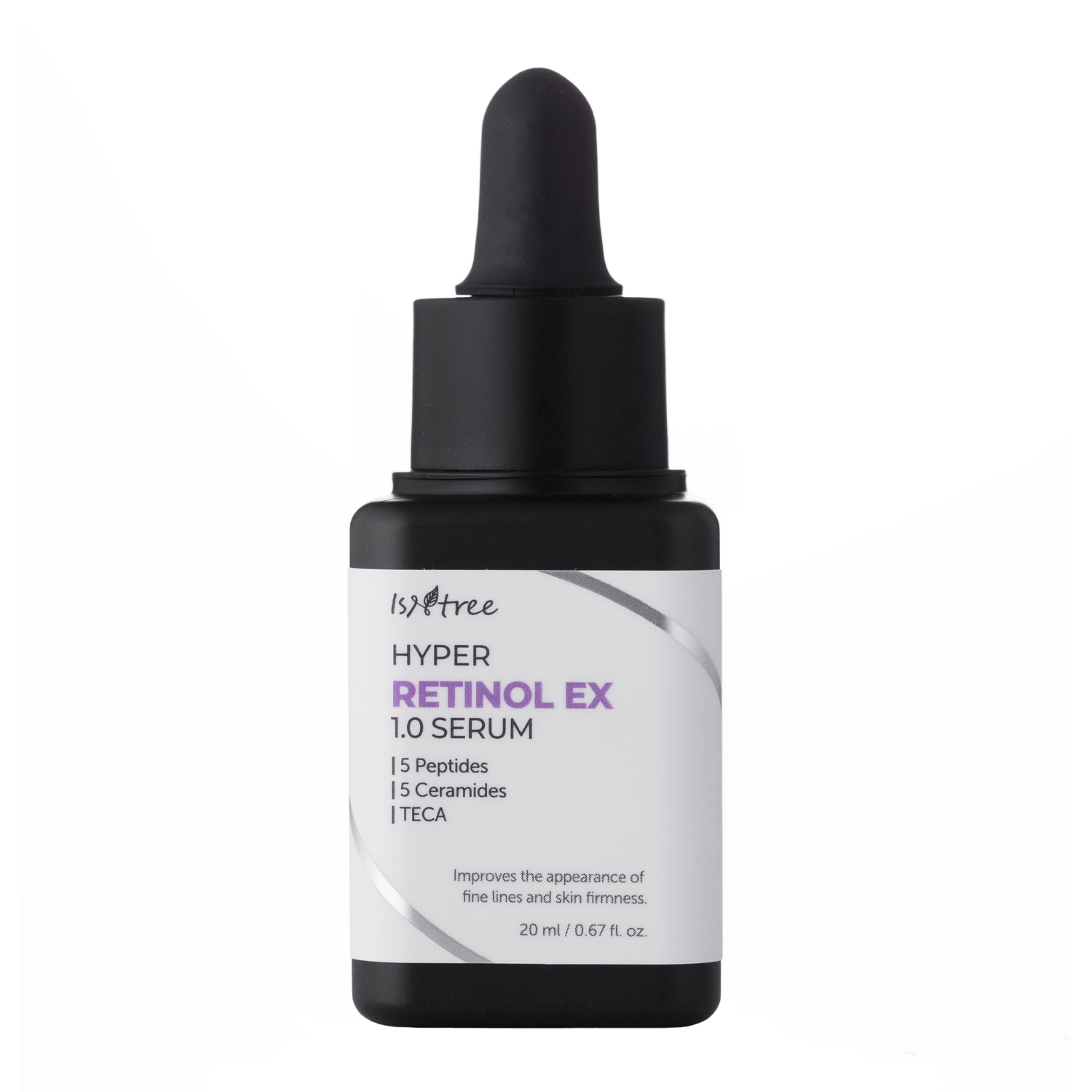 Isntree - Hyper Retinolis Ex 1.0 Serum – senėjimą stabdantis serumas veidui. Sudėtyje yra niacinamido, kuris stiprina odos barjerą ir reguliuoja riebalų išsiskyrimą, pasižymi antioksidaciniu ir priešuždegiminiu poveikiu, taip pat skaistina veido odą. Sudėtyje yra 0,6 % bakučiolio, kuris pasižymi antioksidacinėmis, priešuždegiminėmis ir senėjimą stabdančiomis savybėmis, taip pat kovoja su bakterijomis. 0,1 % retinolis yra labai svarbus reguliuojant riebalų gamybą, šviesinant hiperpigmentaciją ir yra būtinas kovojant su raukšlėmis. Vitaminas E apsaugo nuo laisvųjų radikalų ir gerina odos elastingumą, užkerta kelią priešlaikiniam senėjimui, o pantenolis turi raminamąjį, drėkinamąjį ir regeneruojamąjį poveikį.