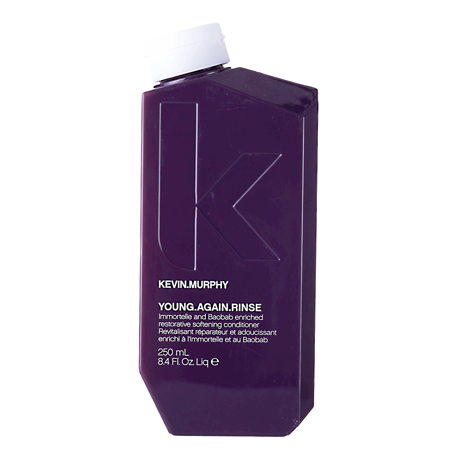 Kevin Murphy - Young Again Rinse – kondicionierius, atkuriantis blizgesį sausiems, pažeistiems ir susilpnėjusiems plaukams. Sudėtyje yra biotino, kuris storina, suteikia elastingumo ir blizgesio plaukams, taip pat skatina jų augimą. Alavijo sultys kartu su pantenoliu drėkina plaukus ir ramina galvos odą. Pantenolis mažina plaukų galiukų skilinėjimą ir stiprina. Piridoksino hidrochloridas apsaugo nuo plaukų elektrinimosi ir glotnina juos. Baobabo aliejus sukuria apsauginį ir glotninantį sluoksnį ant plaukų paviršiaus, taip apsaugodamas nuo drėgmės praradimo ir regeneruodamas plaukus.