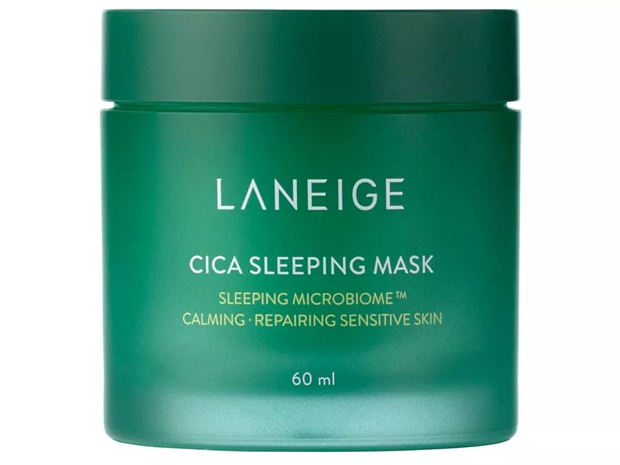 Laneige - Cica Sleeping Mask – regeneruojanti naktinė kaukė, skirta odai, kuriai reikia stipraus nuraminimo ir intensyvaus drėkinimo. Produkto pagrindą sudaro iš Centella Asiatica išskirti veiklieji ingredientai, tokie kaip aziatinė rūgštis ir madekasosidas. Šie pasižymi stipriu priešuždegiminiu poveikiu ir pagreitina nedidelių žaizdų gijimą. Produkto sudėtyje taip pat yra maitinamojo taukmedžio sviesto ir regeneruojančio skvalano, o pridėtas pantenolis sustiprina raminamąjį kosmetikos priemonės poveikį. Dėl arbatmedžio aliejaus jis taip pat pasižymi antibakteriniu poveikiu. Kaukė tinka sudirgusiai ir į trūkumus linkusiai odai.