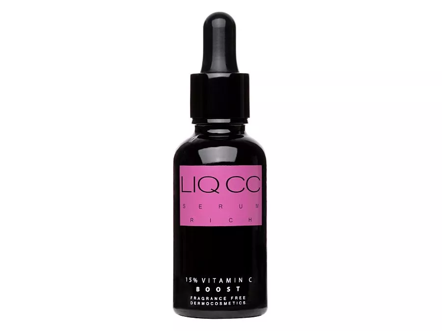 LiqPharm - LIQ CC Serum Rich 15% Vitamin C BOOST - turtingas serumas su 15% vitamino C, kuris kovoja su laisvaisiais radikalais, pasižymi priešuždegiminiu poveikiu ir šviesina hiperpigmentaciją. Gryno, nejonizuotos formos vitamino C aktyvumą sustiprina sudėtyje esantys vitaminas E ir magnis, kurie kartu pasižymi apsauginiu, regeneruojamuoju ir maitinamuoju poveikiu. Serumo formulė praturtinta natrio hialuronatu- mažos molekulinės masės hialurono rūgštimi, kuri suteikia odai drėkinimo ir glotnumo. Produkto sudėtyje nėra kvapiųjų medžiagų ir dirbtinių dažiklių. Produkto pH <3,2.