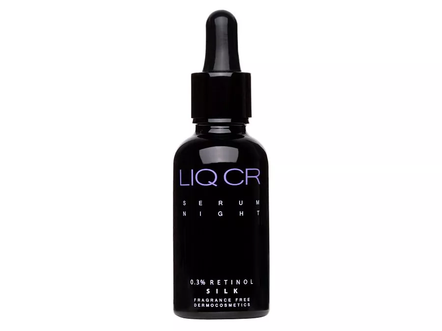 Liqpharm -LIQ CR Serum Night 0,3% Retinol Silk - naktinis serumas su 0,3% koncentracijos vitaminu A retinolio pavidalu , kuris pasižymi stipriu senėjimą stabdančiu poveikiu, neutralizuoja laisvuosius radikalus ir lygina odą. Sudėtyje esanti laktobiono rūgštis pasižymi antioksidacinėmis savybėmis ir malšina uždegimą, o natrio hialuronatas suriša vandenį epidermyje, didindamas jo drėkinimo lygį. Sudėtyje esantis vitaminas E pasižymi senėjimą stabdančiu poveikiu ir maitina odą. Produkto sudėtyje nėra kvapiųjų medžiagų ir dirbtinių dažiklių.