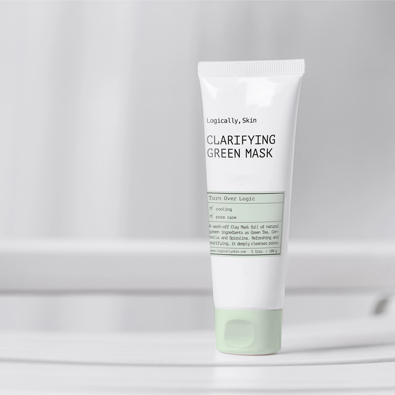 Logically, Skin - Clarifying Green Mask – molio kaukė skirta veido odos priežiūrai. Sudėtyje esantis baltasis molis veikia kaip absorbentas, kuris sugeria sebumo perteklių nuo odos paviršiaus, o taip pat slopina uždegimus ir ramina sudirgimus. Dėl graikinių riešutų kevalų miltelių mažėja spuogų sukelti odos pakitimai, o oda tampa minkštesnė. Be to, kaukėje esanti salicilo rūgštis dėl savo gebėjimo tirpti riebaluose prasiskverbia pro hidrolipidinį sluoksnį, valo, susiaurina ir sumažina išsiplėtusių porų matomumą, kartu sumažindama riebalinių liaukų išskiriamo sebumo kiekį. Azijinės centelės ekstraktas spartina odos regeneraciją, o spirulina, kaip stiprus antioksidantas, neutralizuoja žalingą laisvųjų radikalų poveikį ir gerina odos drėkinimo lygį. Produktas tinka veganams.