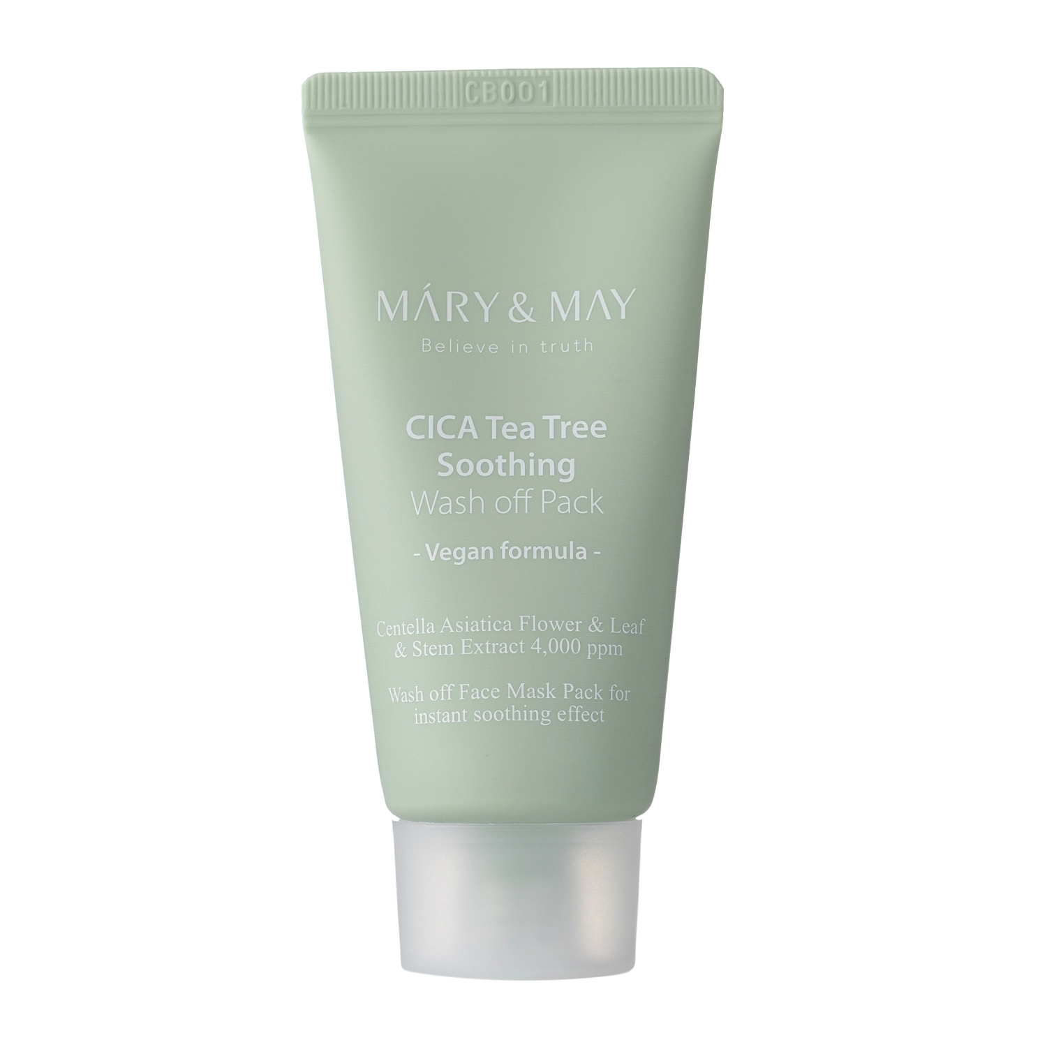 Mary&May - Vegan CICA TeaTree Soothing Wash off Pack - kreminės tekstūros valomoji veido kaukė . Pašalina odos riebalų perteklių ir išvalo riebalinių liaukų latakus. Sudėtyje yra baltojo molio, kuris sugeria nešvarumus, lygina ir matina. Arbatmedžio aliejus saugo nuo bakterijų dauginimosi, mažina odos netobulumus ir užkerta kelią jų atsiradimui. Centella Asiatica ekstraktas ramina sudirgimą ir skatina regeneraciją, o pridėtas alantoinas veikia odąraminamai.Produktas yra veganiškas.