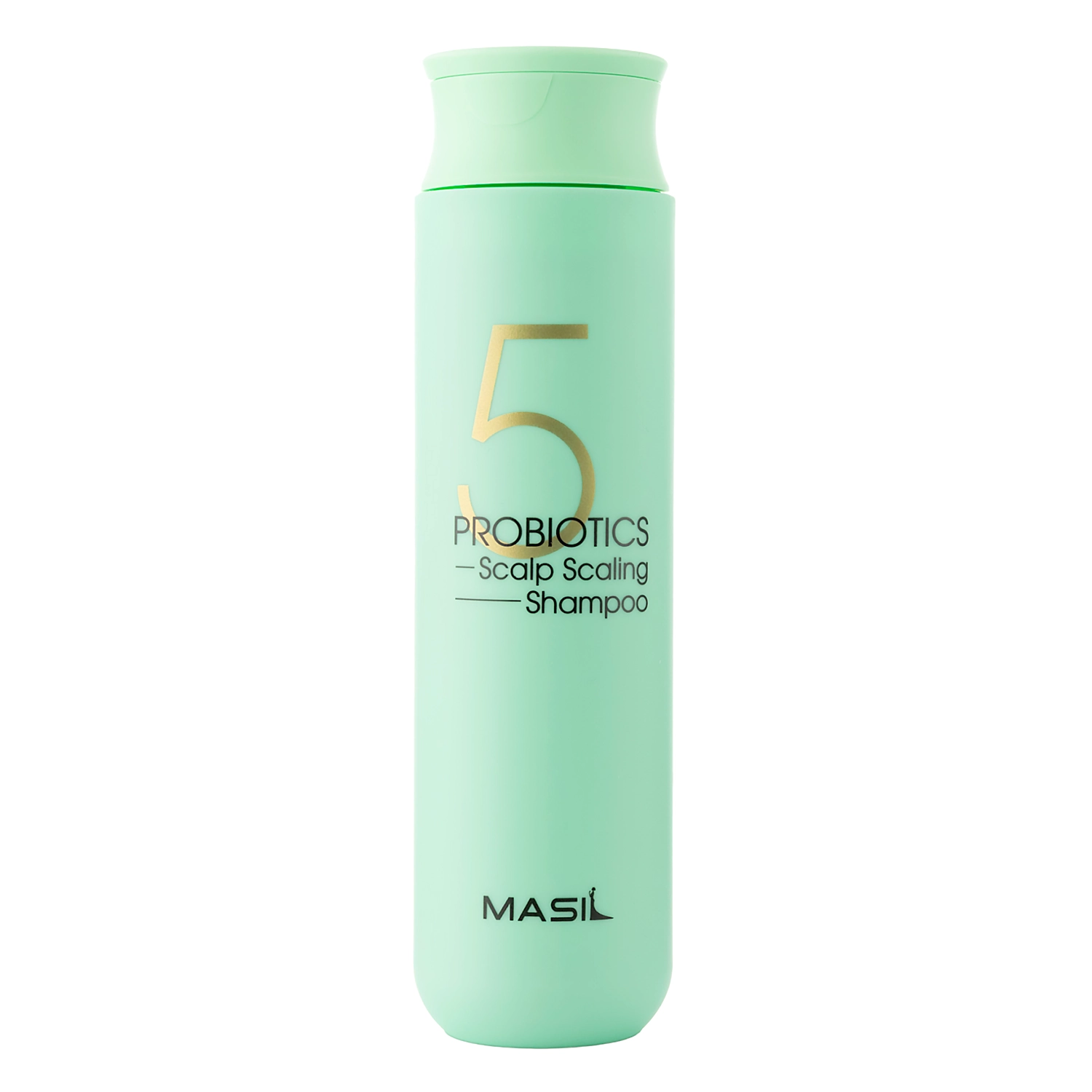 Masil - 5 Probiotics Scalp Scaling Shampoo - valomasis šampūnas su probiotikais. Pašalina nešvarumus ir kondicionuoja plaukus bei galvos odą. Neleidžia susidaryti pleiskanoms ir apsaugo nuo pernelyg didelio riebumo. Šampūnas yra lengvos, želė konsistencijos, lengvai nusiplauna. Sudėtyje yra Lactobacillus bakterijos fermentas, kuris palaiko natūralų odos mikrobiomą, drėkina ir apsaugo nuo perteklinės riebalų gamybos. Salicilo rūgštis skatina negyvos odos šveitimą ir pasižymi priešuždegiminiu poveikiu. Pantenolis ramina sudirgimus ir regeneruoja, o niacinamidas reguliuoja riebalinių liaukų veiklą ir stiprina. Šampūnas maloniai kvepia mėtomis ir prausimosi metu suteikia lengvą vėsinimo pojūtį.