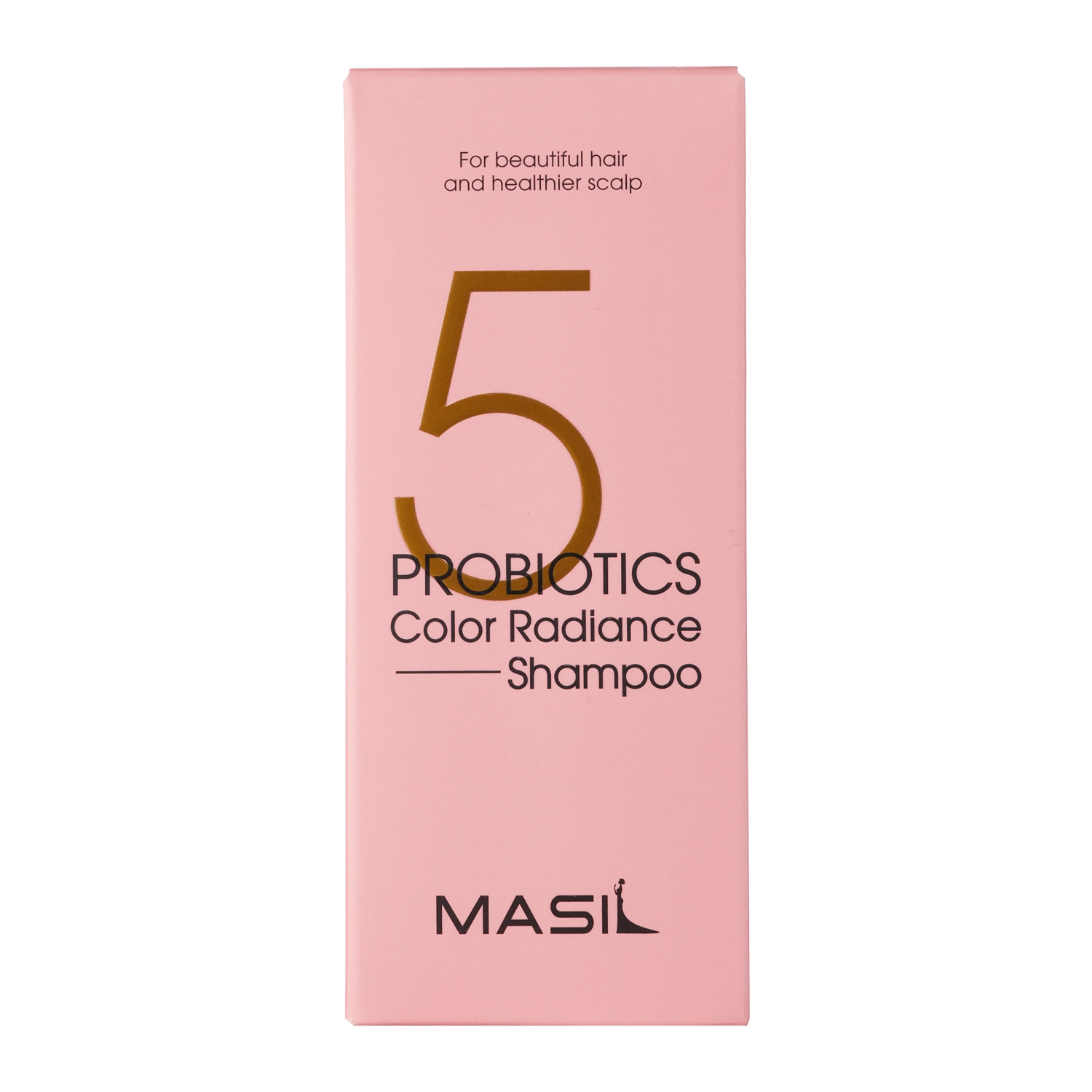 Masil - 5 Probiotics Color Radiance Shampoo - apsauginis šampūnas su probiotikais. Apsaugo nuo UV spindulių daromos žalos, gaivina ir kondicionuoja plaukus bei galvos odą. Apsaugo nuo išblukimo ir suteikia blizgesio. Jis yra želė konsistencijos ir lengvai nusiplauna. Sudėtyje yra Lactobacillus fermentų, kurie palaiko natūralų odos mikrobiomą. Pridėtas cukranendrių ekstraktas drėkina ir glotnina plaukų sruogas. Vynuogių ekstraktas pasižymi antioksidaciniu poveikiu, saugo nuo neigiamo laisvųjų radikalų poveikio. Bičių pienelio ekstraktas aprūpina galvos odą vertingais vitaminais ir mineralais, o alantoinas ramina. Priemonė stiprina plauko struktūrą, mažina lūžinėjimą ir suteikia plaukams minkštumo bei paklusnumo.