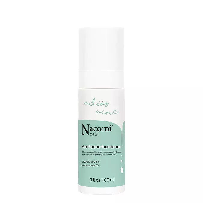 Nacomi - Next Level - Veido Tonikas nuo Aknės - tonikas į aknę linkusiai, riebiai ir mišriai odai su glikolio rūgštimi, kuri švelniai nušveičia negyvas odos ląsteles, ir niacinamidu, kuris mažina uždegimą ir odos spalvos pakitimus. Sudėtyje taip pat yra valerijono šaknų ekstrakto, pasižyminčio antioksidacinėmis savybėmis, ir žaliosios arbatos ekstrakto, kuris regeneruoja ir tonizuoja odą. Priemonė padeda išlyginti odos netobulumus. Visa formulė sudaryta iš natūralios kilmės žaliavų.