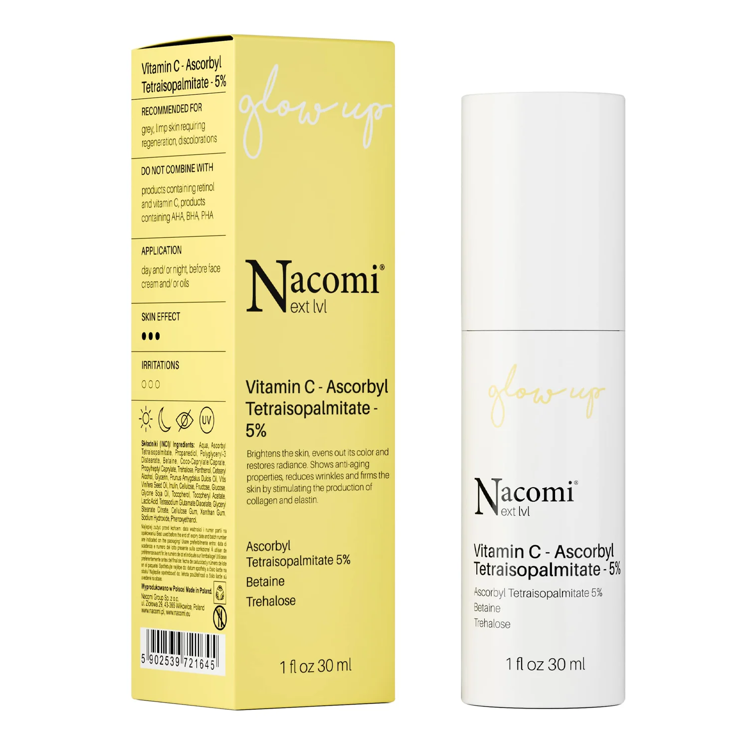 - vitaminas C 5 % - lygina smulkias raukšleles, suvienodina odos tonusą ir skaistina odos spalvos pakitimus,
