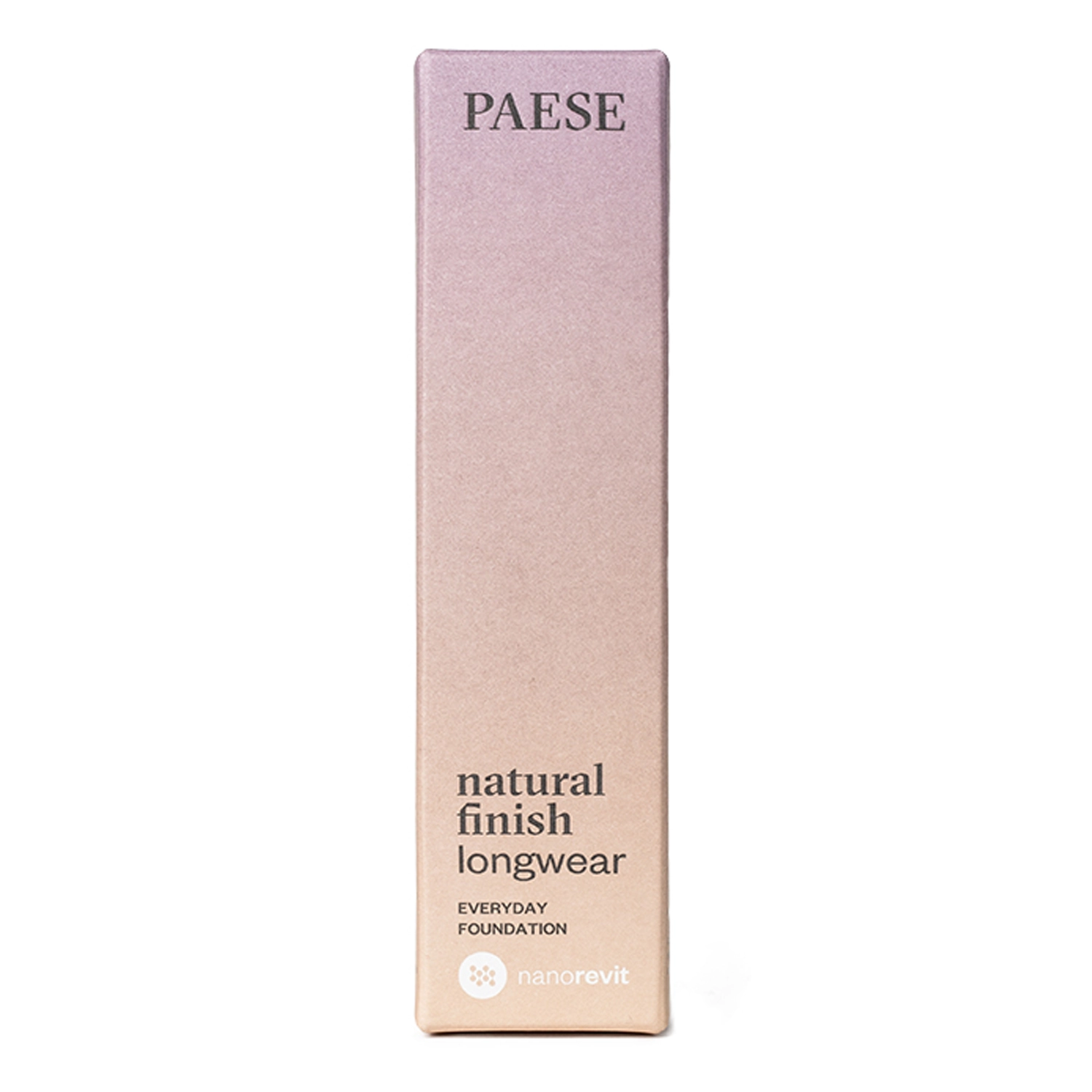 Paese - Nanorevit Natural Finish Longwear Everyday Foundation - 03 Sand - ilgai išliekantis makiažo pagrindas, kuris dėl antioksidantų, esančių juodųjų serbentų sėklų aliejuje, apsaugo odą nuo žalingo išorinių veiksnių poveikio. Turi lengvą, drėkinančią formulę.