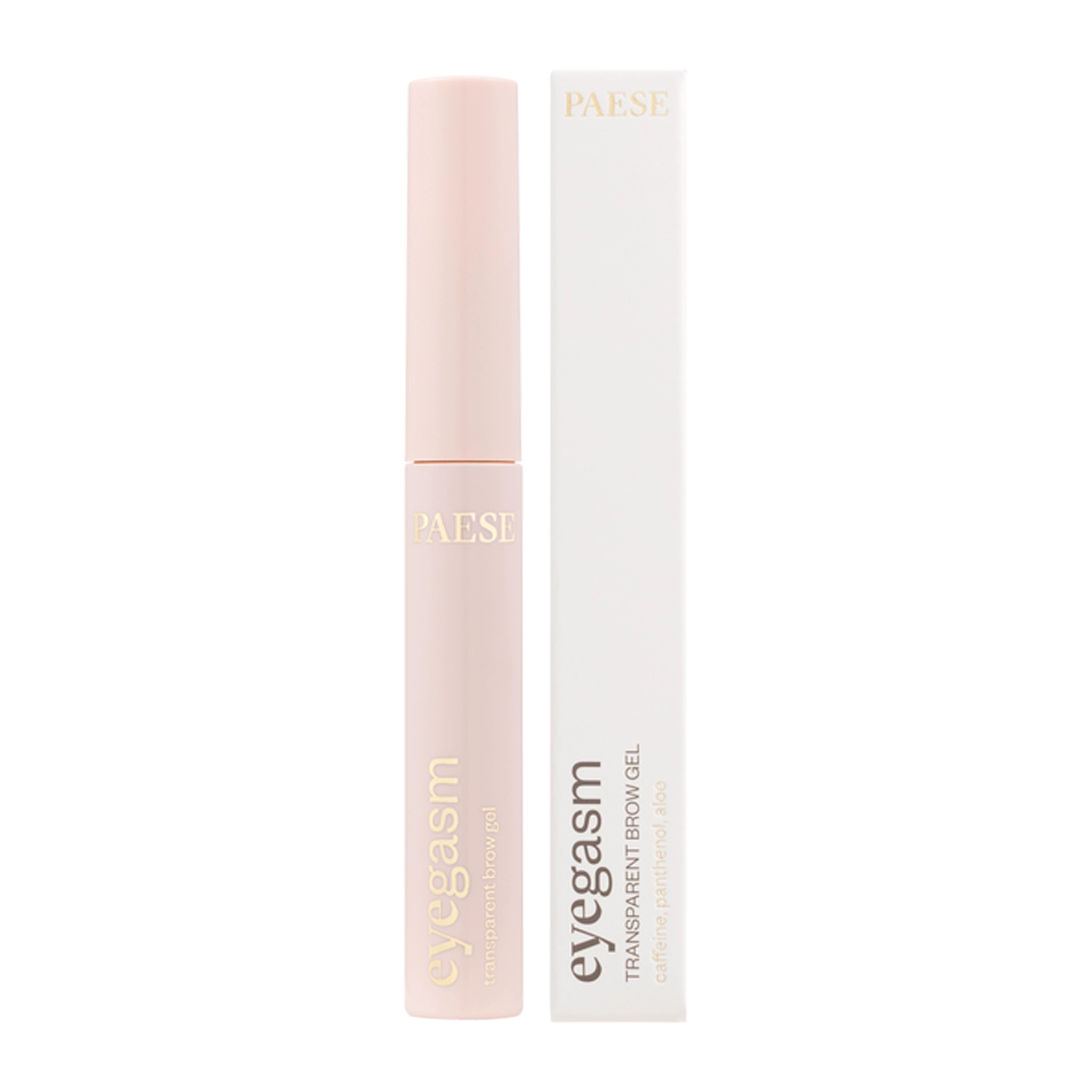 Paese - Eyegasm - Skaidrus Antakių Gelis - gelis antakiams formuoti. Dėl tikslaus šepetėlio jis veiksmingai sutramdo plaukelius ir suteikia norimą formą, išraiškingų ir pilnesnių antakių efektą. Bespalvė formulė taip pat suteikia natūraliai atrodančią išvaizdą. Priemonės sudėtyje yra plaukus puoselėjančių ingredientų: drėkinančių alavijo lapų sulčių, stimuliuojančio kofeino ir raminančio pantenolio.