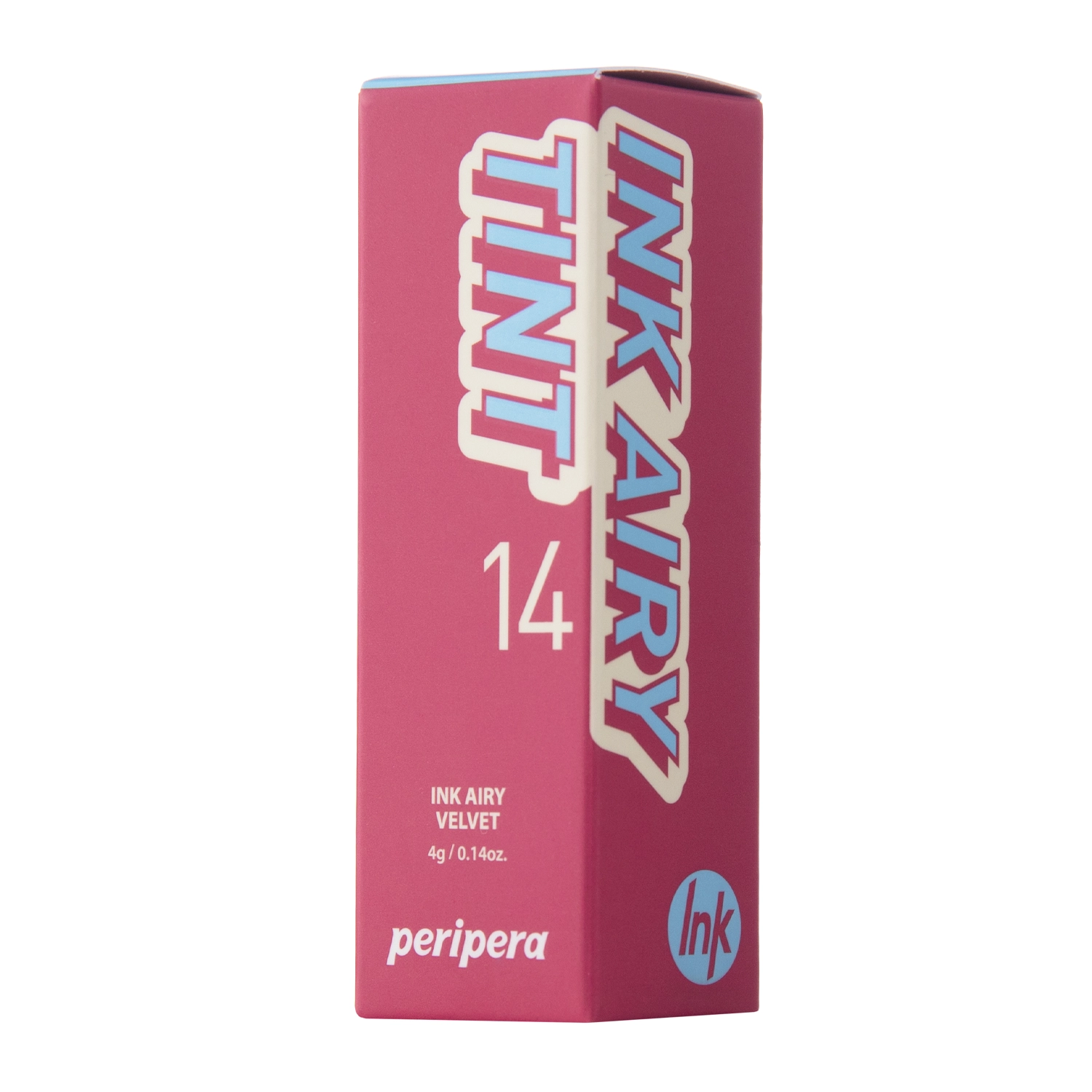 Peripera - Ink Airy Velvet - 14 Rosy Pink - lūpų tintas intensyvios pigmentacijos, rožinės spalvos. Leidžia kurti gradientinę spalvą, todėl galite užpildyti visas lūpas arba padengti vidinę lūpų pusę, kad sukurtumėte subtiliai neryškų efektą. Dėl puoselėjančių medvilnės ir mangų aliejų jo formulė yra drėkinanti. Šie pasižymi švelninančiu ir minkštinančiu poveikiu. Aplikatorius palengvina tikslų produkto užtepimą.