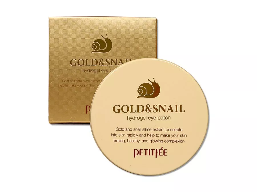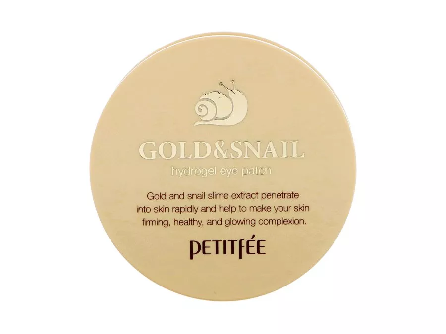 Petitfee - Gold & Snail Hydrogel Eye Patch - hidrogeliniai paakių padeliai, turintys drėkinamąjį ir regeneruojantį poveikį. Sraigių gleivių ekstraktas, esantis esencijoje, į kurią įmerkti padeliai, pagerina drėkinimą, stipriai regeneruoja, atkuria ir pagreitina epidermio atsinaujinimą. Chondrus garbanotųjų žolių ekstraktas papildomai didina odos drėkinimą ir daro ją minkštą bei švelnią.