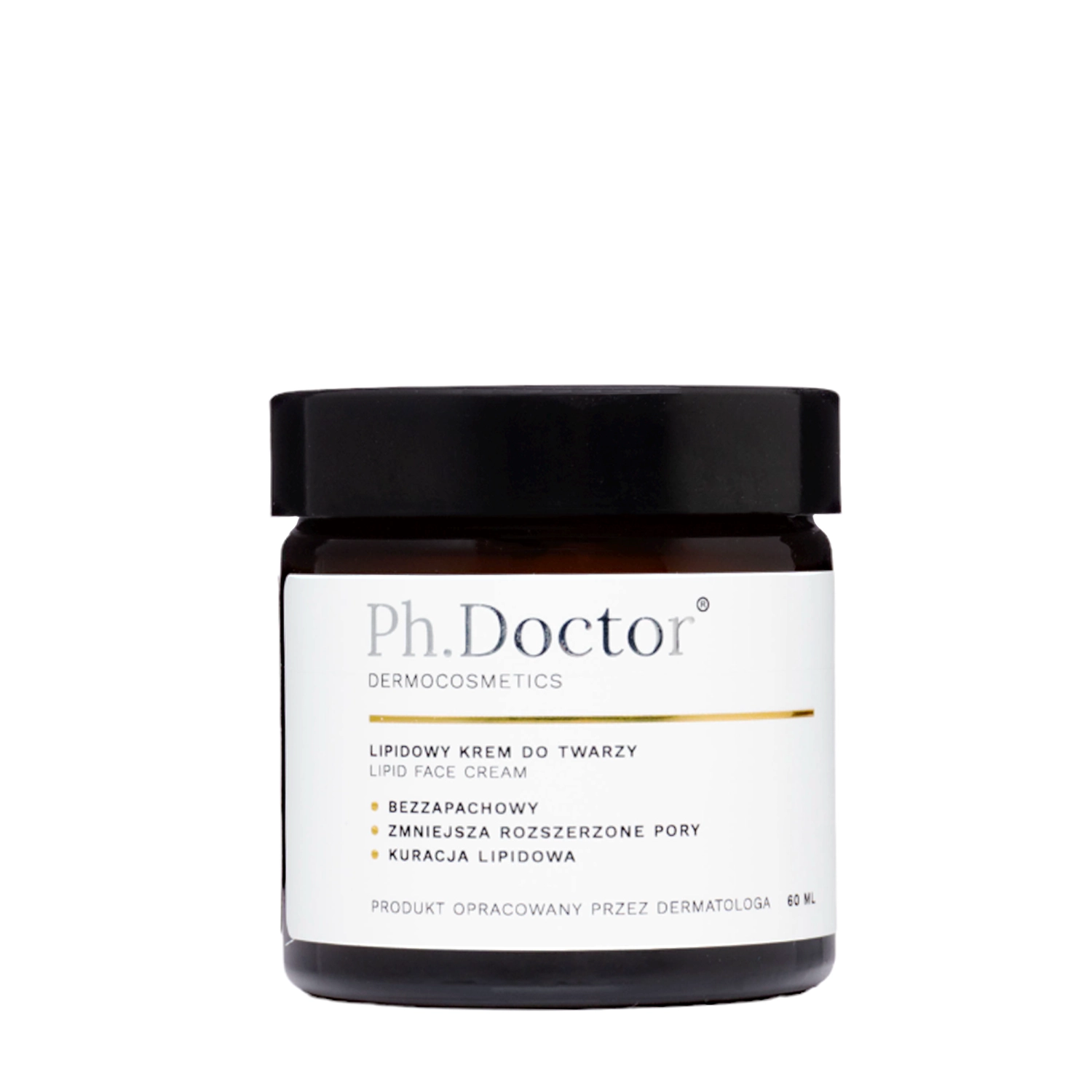 Ph.Doctor - Lipidinis Veido Kremas - kremas, skirtas visų tipų odos priežiūrai. Pasižymi greitu įsigėrimu ir satininiu paviršiumi, todėl puikiai tinka ir kaip makiažo pagrindas. Produkto sudėtyje gausu drėkinančių ir odos hidrolipidinį barjerą atkuriančių ingredientų. Tarp jų yra niacinamidas, kuris pasižymi priešuždegiminiu ir šviesinančiu poveikiu, todėl kremas tinka riebiai ir problematiškai odai. Drėkinamųjų ingredientų dėka, tokių kaip skvalanas ir natrio hialuronatas, sudėtyje esančios medžiagos rūpinasi odos drėkinimo lygiu. Be to, pantenolis yra atsakingas už sudirgimo malšinimą, regeneruoja ir gerina epidermio lipidinį barjerą. Sudėtyje yra puoselėjančių aliejų, pavyzdžiui, ryžių aliejaus, kuris suteikia odai maitinimo, lygumo ir elastingumo. Sudedamųjų dalių sinergija mažina per didelį vandens netekimą iš epidermio. Kosmetikos priemonės sudėtyje yra 89 % natūralios kilmės ingredientų, ji yra veganiška. Tinka nėščioms ir krūtimi maitinančioms moterims. Produkto sudėtyje nėra kvapiųjų medžiagų.