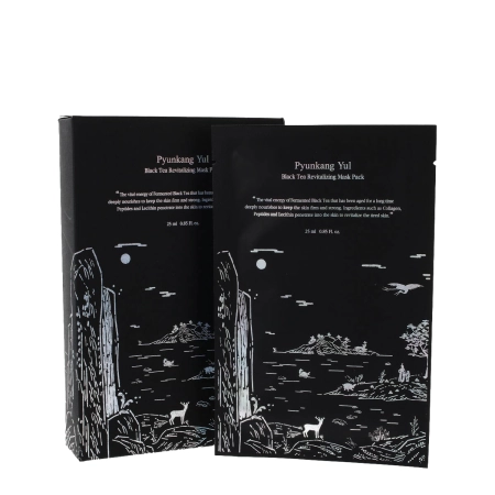 Pyunkang Yul - Juodosios arbatos atgaivinamoji kaukė - regeneracinė lakštinė veido odos priežiūros kaukė. Sudėtyje yra niacinamido, kuris ne tik ramina sudirgimą, bet ir pasižymi riebalinių liaukų veiklą reguliuojančiomis savybėmis bei suvienodina odos tonusą. Antioksidacinis arbatos lapų ekstraktas kartu su mėlynųjų uogų ekstraktu sukuria apsauginį barjerą nuo laisvųjų radikalų ir lėtina odos senėjimo procesus. Peptidai kartu su kolagenu ir 5 molekulinių formų hialurono rūgšties dariniais pasižymi stangrinamuoju ir stangrinamuoju poveikiu ir rūpinasi odos drėkinimu. Formulė taip pat praturtinta skvalanu ir keramidu NP, kurie gali nuraminti odą ir sustiprinti jos būklę. Panaudojus kaukę, oda lieka intensyviai pamaitinta, o jos hidrolipidinis barjeras sustiprėja.