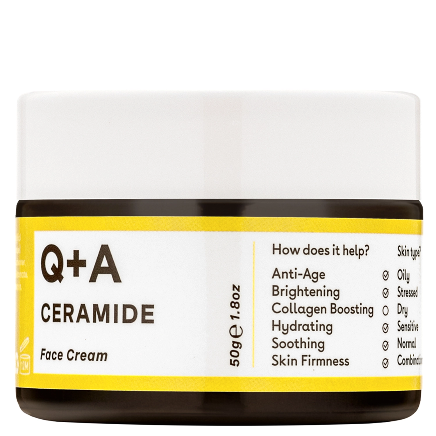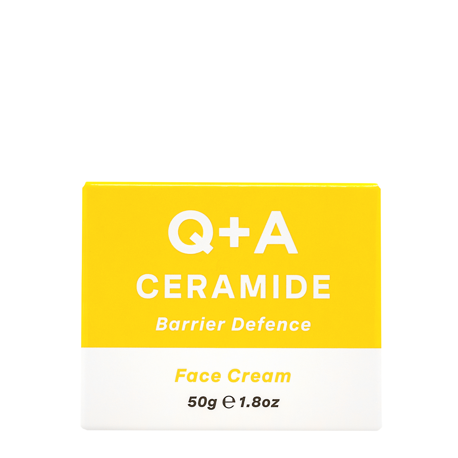 Q+A - Ceramide Barrier Defence Face Cream - ilgai išliekantis drėkinamasis ir raminamasis veido kremas. Rekomenduojamas visų tipų odai. Dėl vertingo keramidų kiekio jis gali būti ypač veiksmingas esant pažeistam hidrolipidiniam barjerui. Unikalios sudėties sudėtyje taip pat yra skvalano ir simondsijų aliejaus, kurie padeda palaikyti tinkamą odos drėkinimą. Be to, šį kremą sudaro 97,9 % natūralios kilmės ingredientų, jis yra veganiškas, be to, jo sudėtyje nėra galinčių dirginti kvapiųjų medžiagų, todėl jis labai švelnus net jautriai odai.