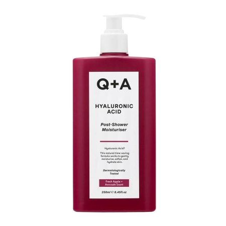 Q+A - Hyaluronic Acid Wet Skin Moisturiser - kūno losjonas, skirtas visų tipų odai. Sudėtyje esantys aliejai padeda tinkamai drėkinti, lyginti ir sutepti epidermį.Lazdynų riešutų aliejus, ricinos aliejus ir avokadų aliejus kartu veikia minkštindami epidermį, stangrindami jį ir suteikdami blizgesio. Natrio hialuronatas stipriai drėkina, regeneruoja ir maitina epidermį, o inulinas išlygina, suteikia blizgesio, drėkina ir ramina.