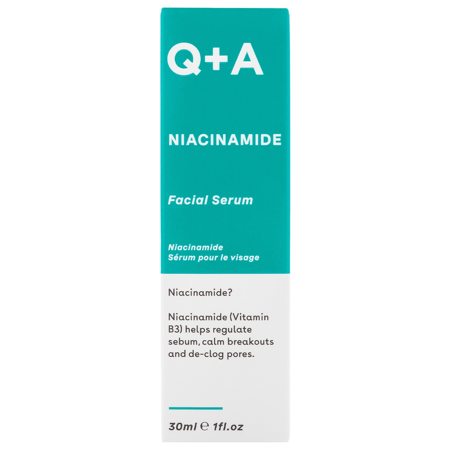 Q+A - Niacinamide Facial Serum - balansuojantis veido serumas su niacinamidu, kuris šviesina epidermį ir reguliuoja riebalų išsiskyrimą . Sudėtyje esantis natrio hialuronatas ir alantoinas turi įtakos tinkamam epidermio drėkinimo lygiui ir ramina sudirgimus. Alavijo lapų ekstraktas kartu su goji vaisių ekstraktu regeneruoja odą, turi senėjimą stabdantį ir lyginamąjį poveikį. Serumo formulė yra veganiška.