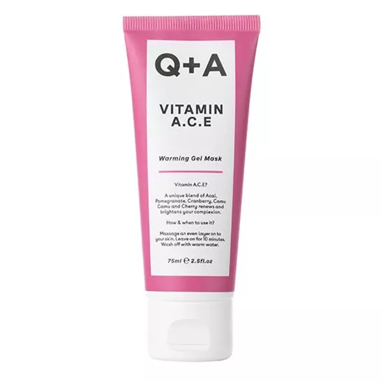 Q+A- Vitamin A.C.E - Warming Gel Mask - vitamininė veido kaukė, kurios sudėtyje yra antioksidacinių savybių turinčių vitaminų A, C ir E, esančių simondsijų, ricinos, abrikosų kauliukų ir spanguolių, acai uogų ir Camu Camu ekstraktuose. Kaukė skaistina ir jaunina veido odą, naudojimo metu sušildo odą, o nuplovus oda tampa sudrėkinta ir švytinti. Pridėjus taukmedžio ir kakavos sėklų sviestų, ant odos sukuriama apsauginė plėvelė, sauganti odą nuo išorinių veiksnių.