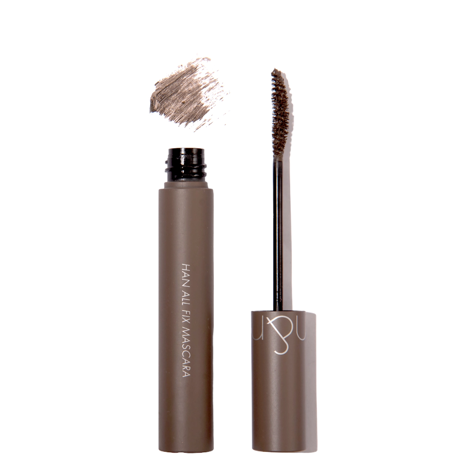 Rom&nd - Han All Fix Mascara - 02 Ash - blakstienų tušas grafito-rudos spalvos. Tai vandeniui atspari, ilgai išliekanti formulė. Turi kontūrinį šepetėlį, kuris suteikia blakstienoms ilginantį ir garbanojantį efektą. Jis nesukuria gumulėlių ir nesutepa. Dėl unikalios spalvos suteikia natūralų efektą.