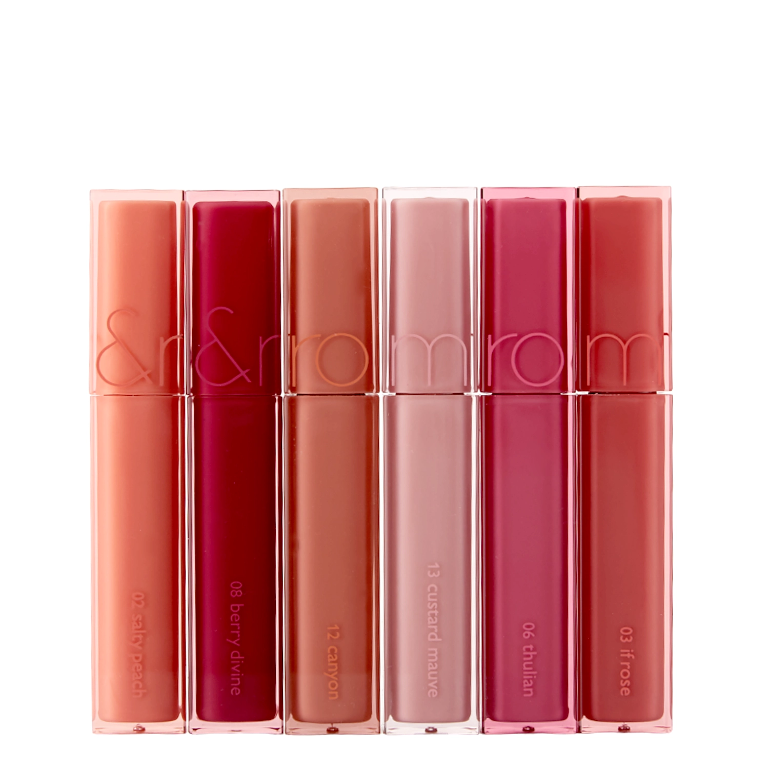 Rom&nd - Dewyful Water Tint Muteral Nude Series - 13 Custard Mauve - ilgai išliekantis lūpų tintas su švelniu, prigesintu rožiniu tonu ir lengva, bet gerai dengiančia formule. Priemonė pasižymi ilgai išliekančia, lengva formule. Palieka blizgų atspalvį. Puikiai paryškina natūralią lūpų spalvą ir suteikia gaivumo. Sudėtyje yra papildomo drėkinamojo skvalano ir vertingų augalų ekstraktų.