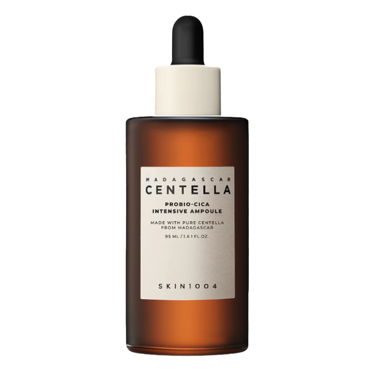SKIN1004 - Madagaskar Centella Probio-Cica Intensive Ampoule - šis veido serumas yra profesionali priemonė, kuri drėkina, regeneruoja ir stiprina odą. Josudėtyje yra Centella Asiatica ekstrakto,kuris intensyviai drėkina odą, skatina regeneraciją ir pasižymi priešuždegiminiu poveikiu. Be to, niacinamidas reguliuoja riebalų išsiskyrimą, veikia priešuždegimiškai ir skaistina odą, o natrio hialuronatas giliai drėkina, lygina ir stangrina odą. keramidai A lantoinas ramina sudirgimus, regeneruoja ir drėkina odą.