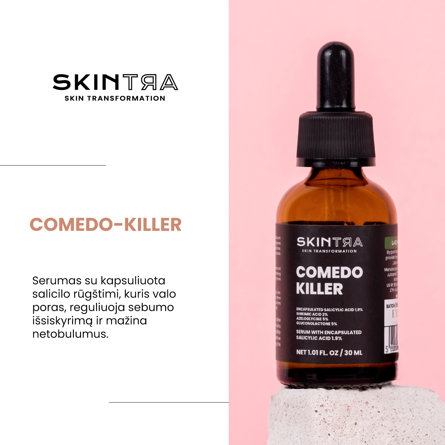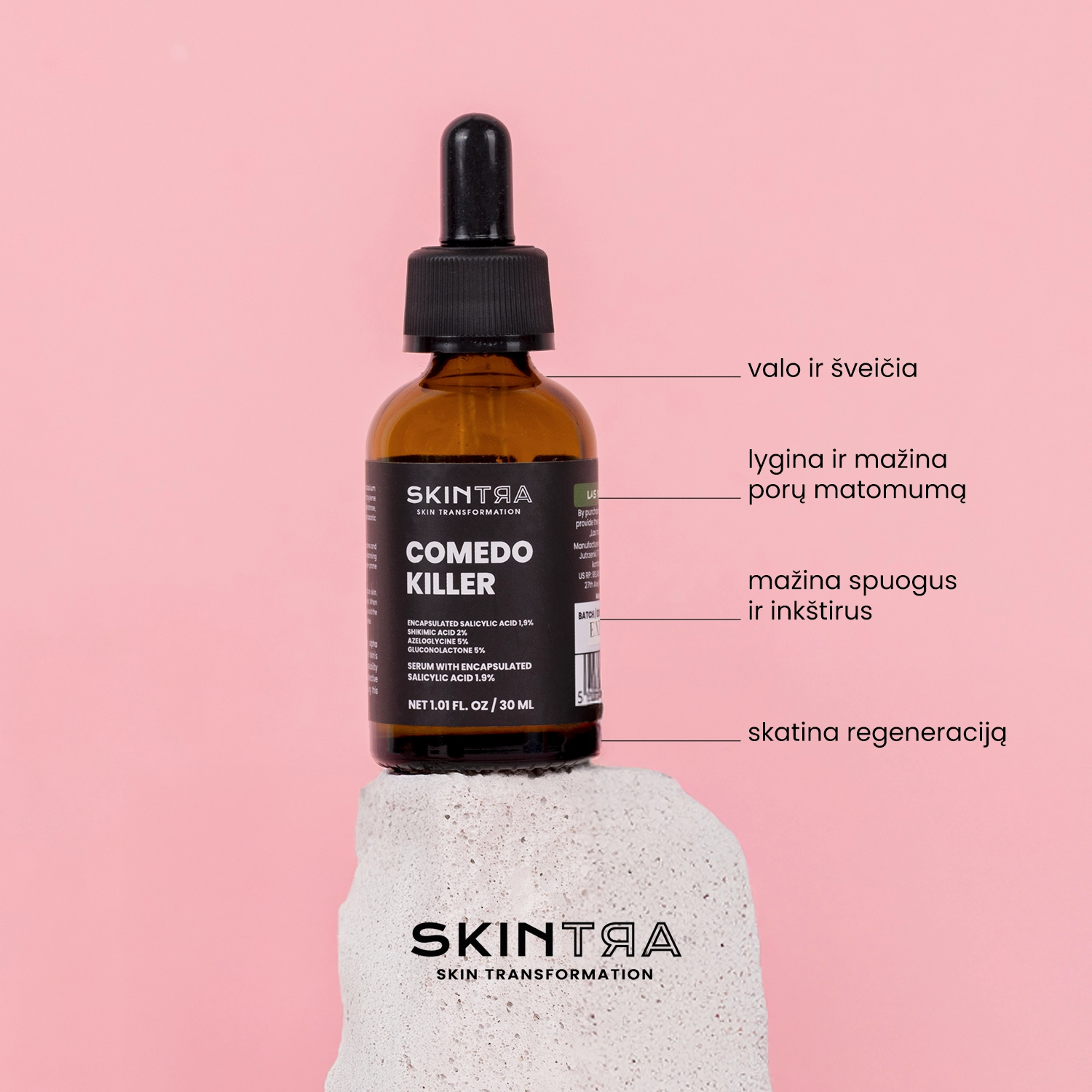 - Koncentruotas serumas su 2 % salicilo rūgštimi, azeloglicinu ir gliukonolaktonu