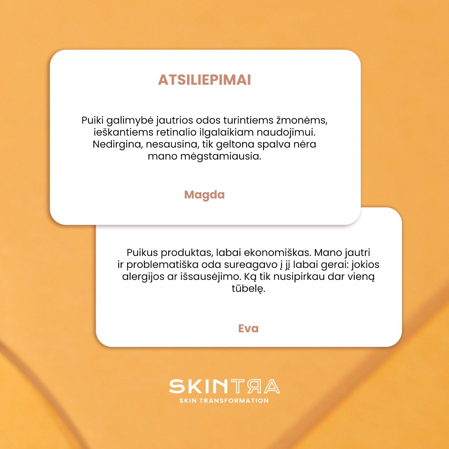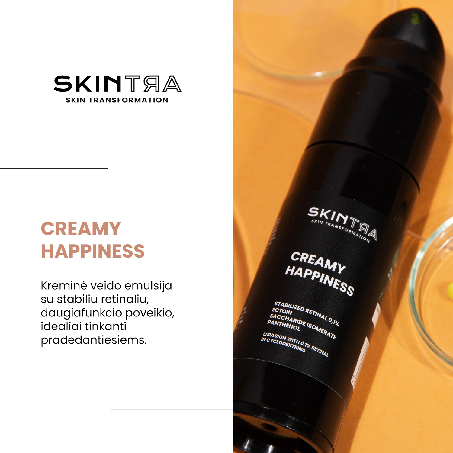 - Kreminės konsistencijos veido emulsija su stabiliu retinalu, pasižyminti daugiakrypčiu veikimu.