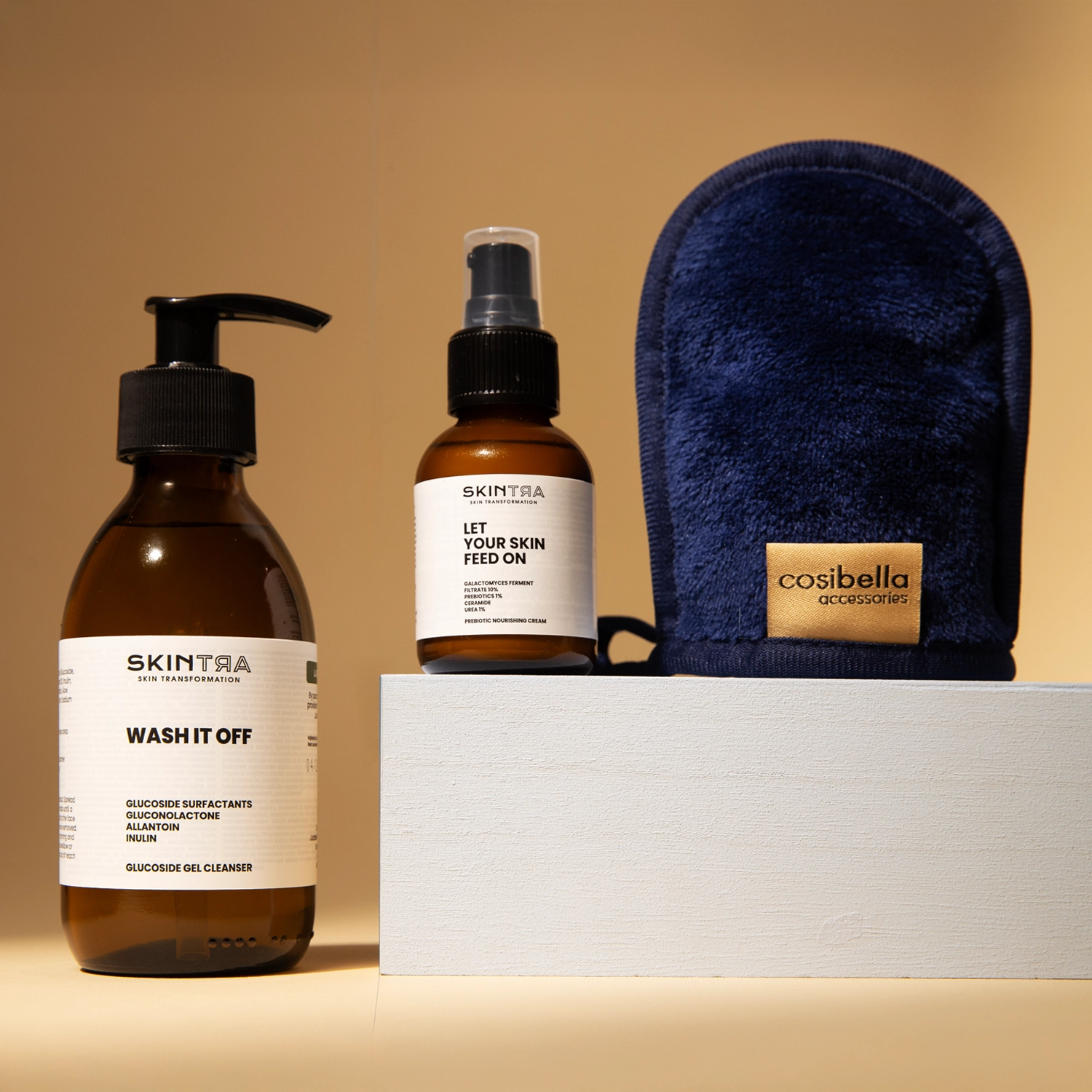 - SkinTra - Wash It Off - veido prausimosi gelis, kuris užtikrina efektyvų valymą kartu su odos barjero apsauga. Formulėje naudojami gliukozidiniai surfaktantai, kurie pasižymi valomosiomis savybėmis, tačiau išlieka švelnūs odos mikrobiomui ir lipidiniam barjerui. Talpa: 200ml.