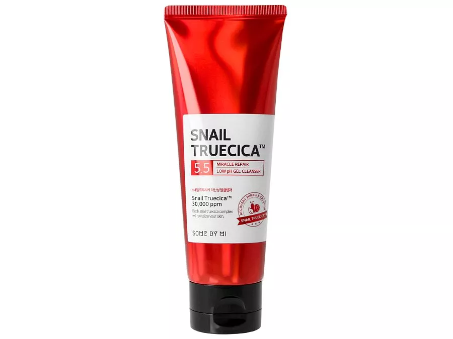 Some By Mi - Snail Truecica Miracle Repair Low pH Gel Cleanser – valomasis gelis su sraigių gleivių filtratu , pasižyminčiu raminančiomis, gydomosiomis ir regeneruojančiomis savybėmis. Jo pagrindą sudaro švelnios valomosios medžiagos, kurios veiksmingai, bet neagresyviai valo odą. Jo sudėtyje taip pat yra pelyno ekstrakto, arbatmedžio lapų ir azijinės centelės derinio derinio vadinamo Truecica™", kuris ramina sudirgusią odą ir skatina jos gijimą bei regeneraciją. Be to, priemonė praturtinta bergamočių aliejumi, kuris pasižymi antiseptinėmis savybėmis, ir pantenoliu, kuris ramina sudirgimą ir paraudimą. Produkto pH yra 5,5.