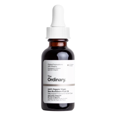 "The Ordinary" - 100 % ekologiškas šaltalankių vaisių aliejus 100 % ekologiškas šaltalankių vaisių aliejus 30 ml "The Ordinary" - 100 % ekologiškas šaltalankių vaisių aliejus - 100 % grynas, nerafinuotas, ekologiškasšaltalankių vaisių aliejus. Sudėtyje yra didelė palmitino rūgšties (Omega 7) koncentracija, maitinanti ir sauganti odą. Produktas greitai įsigeria. Rekomenduojamas visų tipų odai, ypač jautriai ir dehidratuotai. Kosmetikos priemonės sudėtyje nėra vandens, silikono ir alkoholio. Ji yra be glitimo ir veganiška, ją gaminant nenukentėjo jokie gyvūnai.