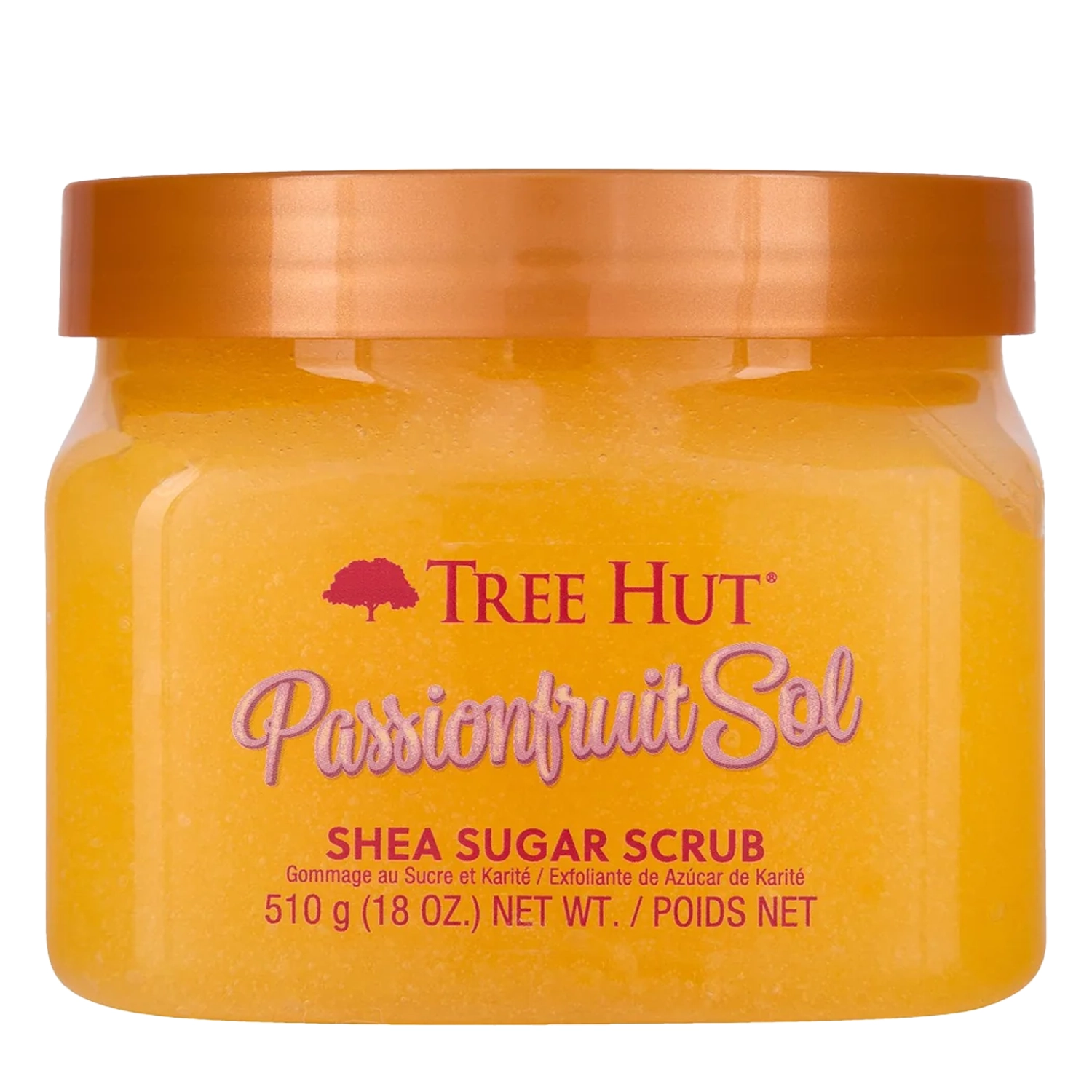 Tree Hut - Shea Sugar Scrub Passionfruit Sol - kūno šveitiklis su egzotišku pasiflorų kvapu. Giliai maitina ir subalansuoja odos drėkinimą, grąžina jai gražų švytėjimą. Sudėtyje esančios cukraus dalelės pašalina negyvas epidermio daleles, atskleisdamos švytinčią, švelnią ir lygią odą. Formulė slepia gausybę augalinių aliejų ir taukmedžio sviesto, kurie kartu rūpinasi odos gerove, palieka kūną kvepiantį ir atgaivintą. Produktas tinka veganams.