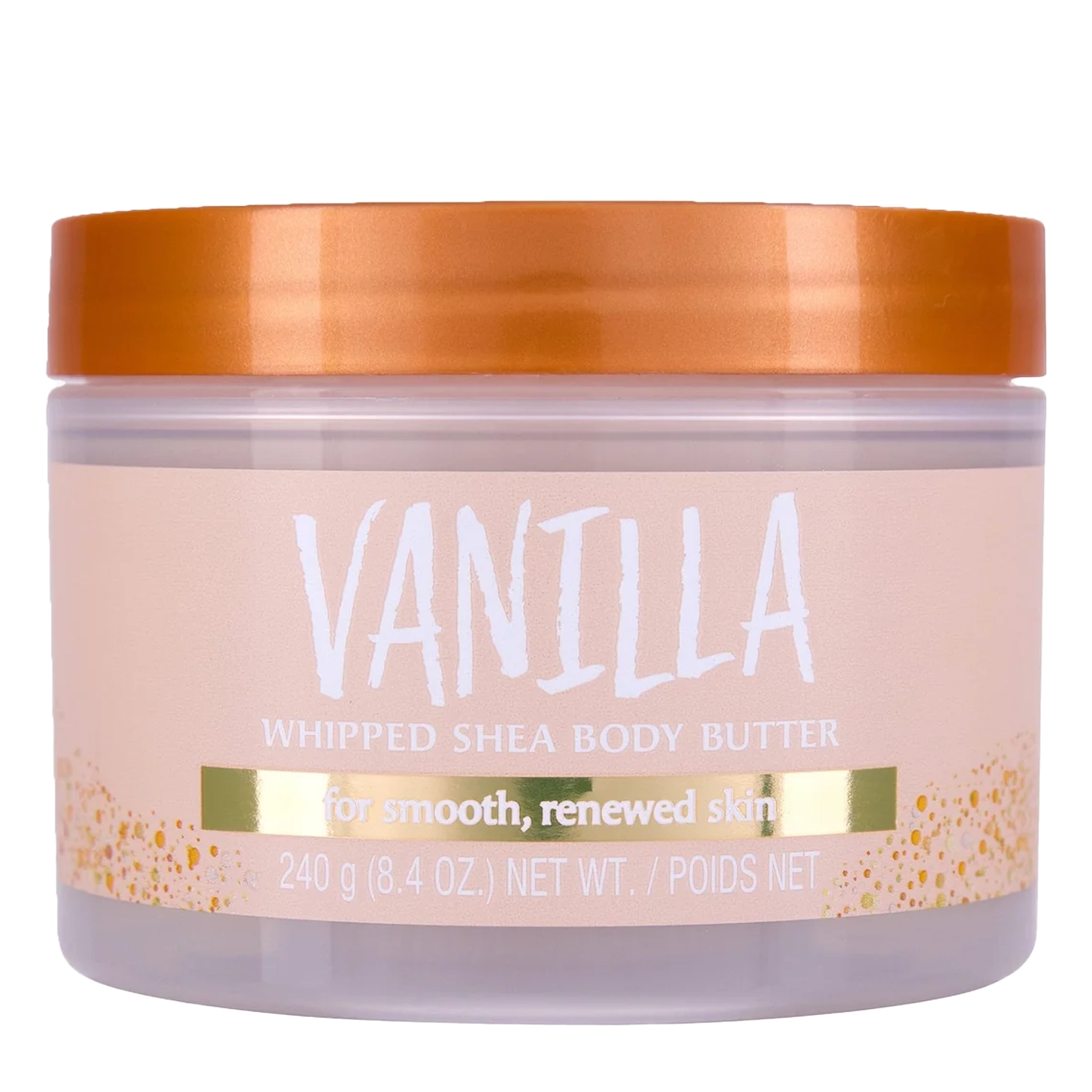 Tree Hut - Whipped Body Butter Vanilla - drėkinamasis kūno sviestas su unikalia putų tekstūra. Jo formulė yra lengva ir nepalieka odos sunkumo pojūčio. Turi vanilės kvapą, kuris ilgai išlieka ant kūno. Sudėtyje yra maitinamojo taukmedžio sviesto, raminamojo avižų sėklų ekstrakto ir sausą odą regeneruojančių kviečių amino rūgščių. Priemonė lengvai pasiskirsto ir palieka aksominio švelnumo pojūtį. Kosmetikos priemonė yra veganiška.